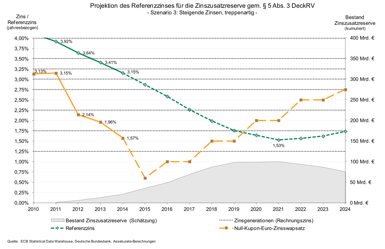 Szenario 3: Sukzessive ansteigende Zinsen über die nächsten Jahre
