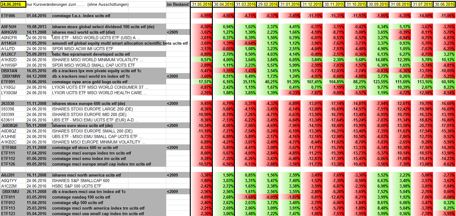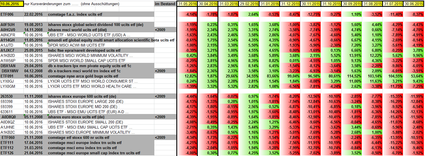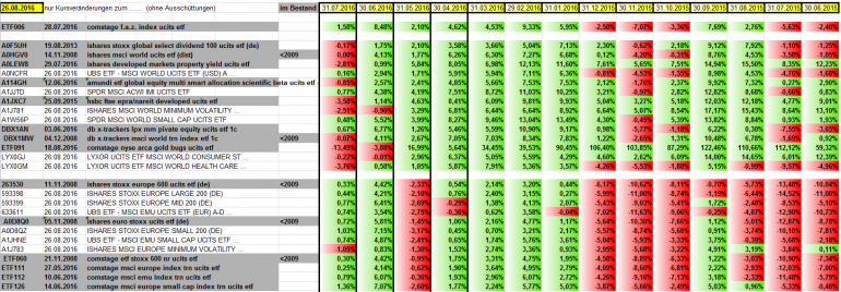 Bis auf den MinVol und die Goldminen alle beobachteten ETFs in einem schönen satten ROT