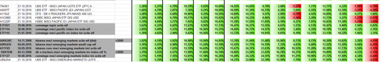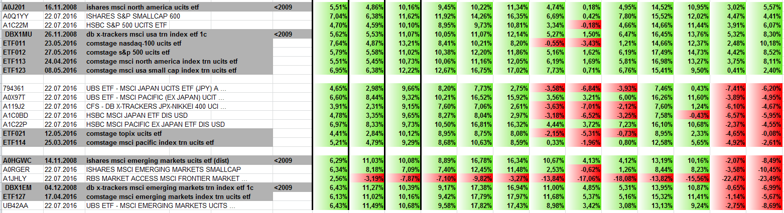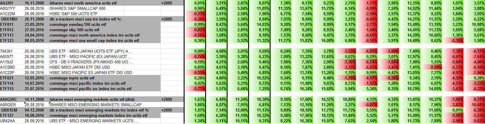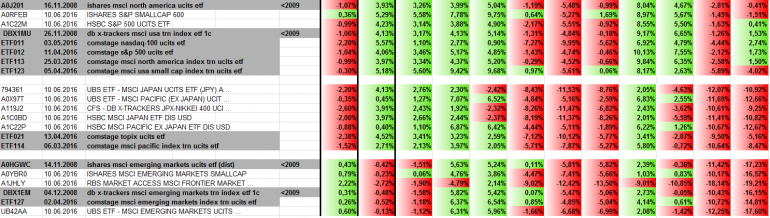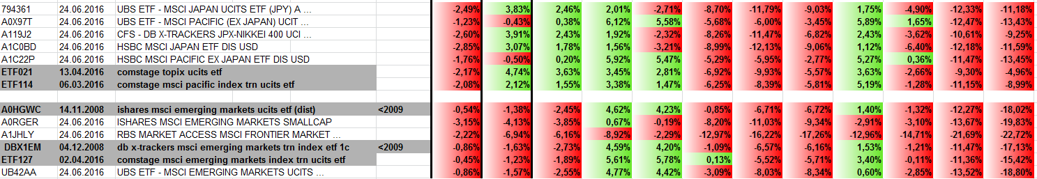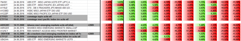 Überzeugende Zahlen liefern Japan (insbesondere Topix) sowie alle Emerging ETFs