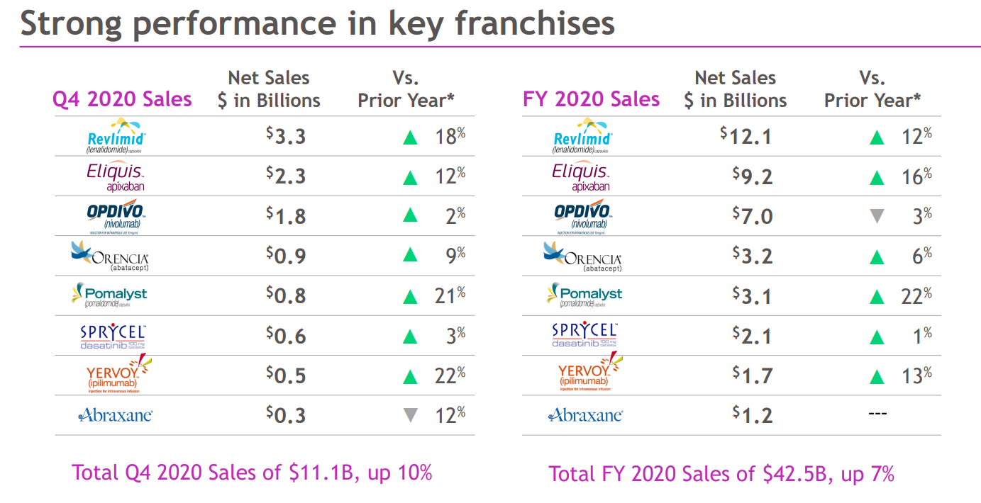 Kai_Eric Februar 10, 2021 · bearbeitet Februar 10, 2021 von Kai_Eric Das sind die BMY Quartalszahlen und Jahreszahlen für die Top 8 Produkte laut Bericht vom 4.2. Die beiden umsatzstärkste Produkte machen etwa die Hälfte der Sales aus. Sie dominieren Sie Zahlen des Unternehmens. Beide wachsen mit deutlich über 10% und sollten noch bis 2026/27 Exklusivität haben. Daher ist aktuell alles gut. Für die Nummer 3 Opdivo sollte es im Laufe des Jahres eine deutliche Ausweitung der Anwendungsmöglichkeiten geben. Es gibt einige vielversprechende Entwicklungskandidaten in vers. Indikationen, die werden ab Mitte des Jahrzehnts auch benötigt. Ich denke, die Firma ist insgesamt gut aufgestellt. Diesen Beitrag teilen Link zum Beitrag