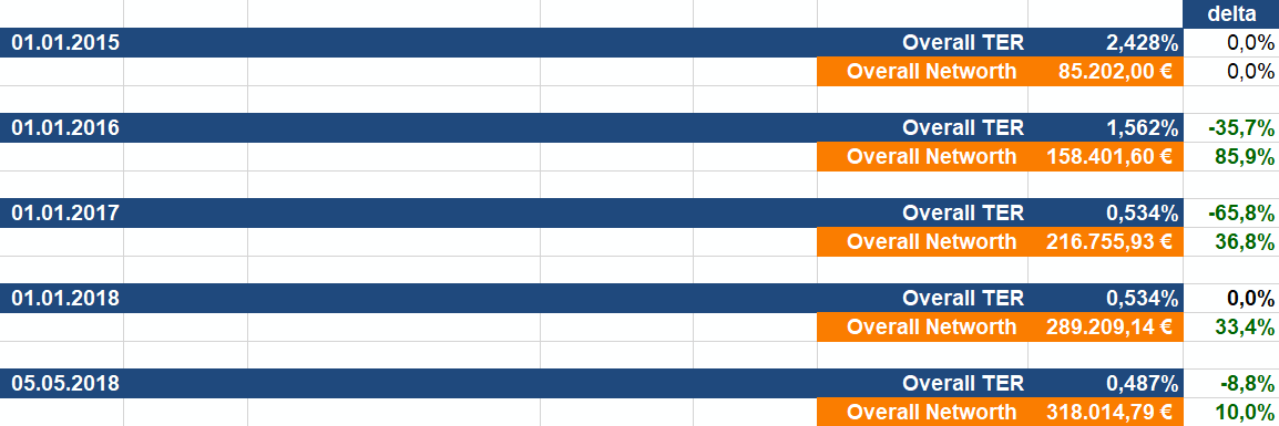 und bin dank der Umstellung weg von aktiven Fonds hin zu ETFs zu dieser sehr erfreulichen Entwicklung gekommen: