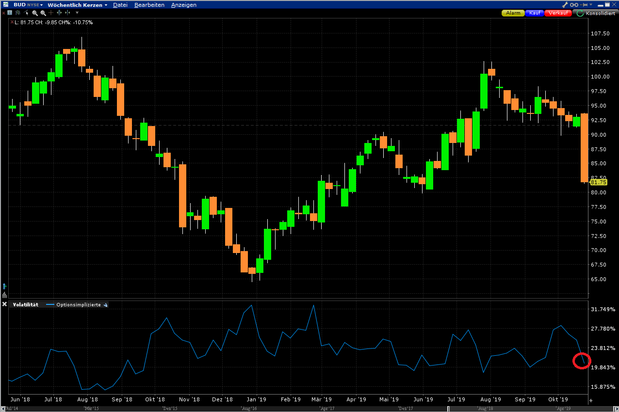 Maria Oktober 26, 2019 vor 42 Minuten von passiv_Investor: IVR 65? Aber sicher nicht mehr nach den Quartalszahlen, oder? Hat heute morgen noch die TWS angezeigt, aber die Werte sind manchmal falsch. Pi mal Daumen würde ich auch denken, dass es nach den Earnings niedriger ist. Allerdings kommt es nach schlechten Earnings oft vor, dass die Volatilität nicht kollabiert, sondern eben wegen dem starken Kursrückgang erhöht bleibt. Diesen Beitrag teilen Link zum Beitrag