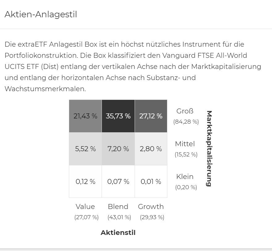 Madame_Q April 16, 2021 · bearbeitet April 16, 2021 von Madame_Q vor 1 Stunde von Peter23: Vermutlich sind sogar effektiv mehr % SC im Vanguard als im SPDR, weil der Vangaurd ja auch wirklich die Aktien des Index kauft. Du kannst dein Bashing gegen den SPDR nicht lassen oder? vor einer Stunde von DST: Der SPDR Anleger sollte darauf ebenfalls verzichten können, denn sie sind aufgrund des hohen Tracking Errors ex ante nicht zu erwarten. Da ist die entscheidende Frage, die sich jeder selbst stellen muss: Sofern Small Caps gut laufen in der Anlagezeit - merkt man dies dann als Anleger eines SPDR ACWI IMI im Vergleich zum Vanguard All World oder nicht? Dieser positive Small Cap-Effekt dürfte nur dann wirklich in der Performance verpuffen, wenn die TD des SPDR dauerhaft sehr schlecht ist. Man wird es sehen... vor 1 Stunde von vanity: Hat der FTSE All World nicht sogar ein paar SC nach MSCI-Logik mit dabei, die Größeren der Kleineren? Und die Kleineren der Kleineren mit ihren 0,0x% Anteil haben ja bekanntermaßen keinen Einfluss auf die Performance (sondern nur auf die TD, weil sie so schwer beschaffbar sind). Ich weiß nicht, ob das hier ein wenig hilft, aber ich poste es einfach mal: Diesen Beitrag teilen Link zum Beitrag