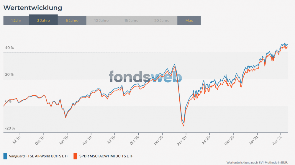 tyr April 29, 2021 · bearbeitet April 29, 2021 von tyr vor 28 Minuten von oktavian: wenn dadurch im Schnitt outperformance zu erwarten wäre Im Schnitt ist die Indexperformance zu erwarten: https://www.ssga.com/library-content/kiids?isin=IE00B3YLTY66&documentType=kiid&country=de&language=de&ticker=spyi-gy Zitat Anlageziel Das Ziel des Fonds ist die Nachbildung der Wertentwicklung von Aktienmärkten in Industrie- und Schwellenländern. Anlagepolitik Der Fonds versucht, die Wertentwicklung des MSCI ACWI IMI (All Country World Investable Market Index) Index (der „Index") möglichst genau abzubilden. Anlagepolitik ist keine Outperformance, sondern möglichst genau die Indexperformance. Grundlagen, die einem selbst das KIID ganz am Anfang prägnant und kurz aufführt. vor 41 Minuten von Rendito: Man muss den SPDR-Fondsmanagern zugute halten, dass sie sich keinen Illusionen über ihre Fähigkeiten als Indextracker hingeben. Aus dem aktuellen Fondsprospekt des SPDR MSCI ACWI IMI (Nachtrag Nr. 3): Zum Vergleich aus dem aktuellen Fondsprospekt des Vanguard FTSE All-World (Appendix 1): Und jetzt noch verstehen, was man mit der Geldanlage in beiden Fonds eigentlich bezwecken will. Kann man sich von der TD etwas kaufen? Oder möchte man sich eine Indexrendite in das Depot holen? Hmm, nachdenken ... ... Faszinierend, welche Verrenkungen manche hier vornehmen, um sich ihre Entscheidung schön zu reden. Interessanterweise besteht dieses Puzzle seit 2016 durchgängig. Diesen Beitrag teilen Link zum Beitrag