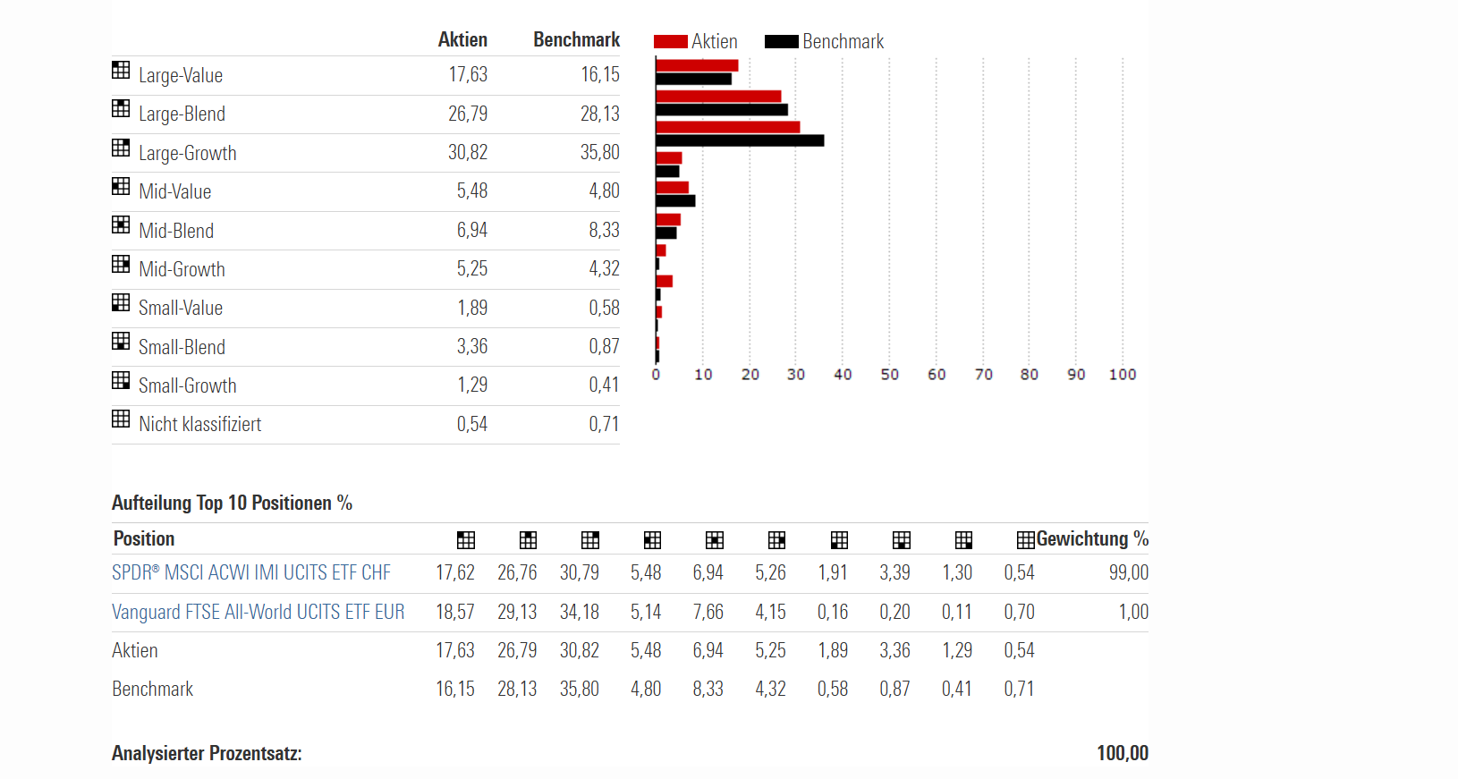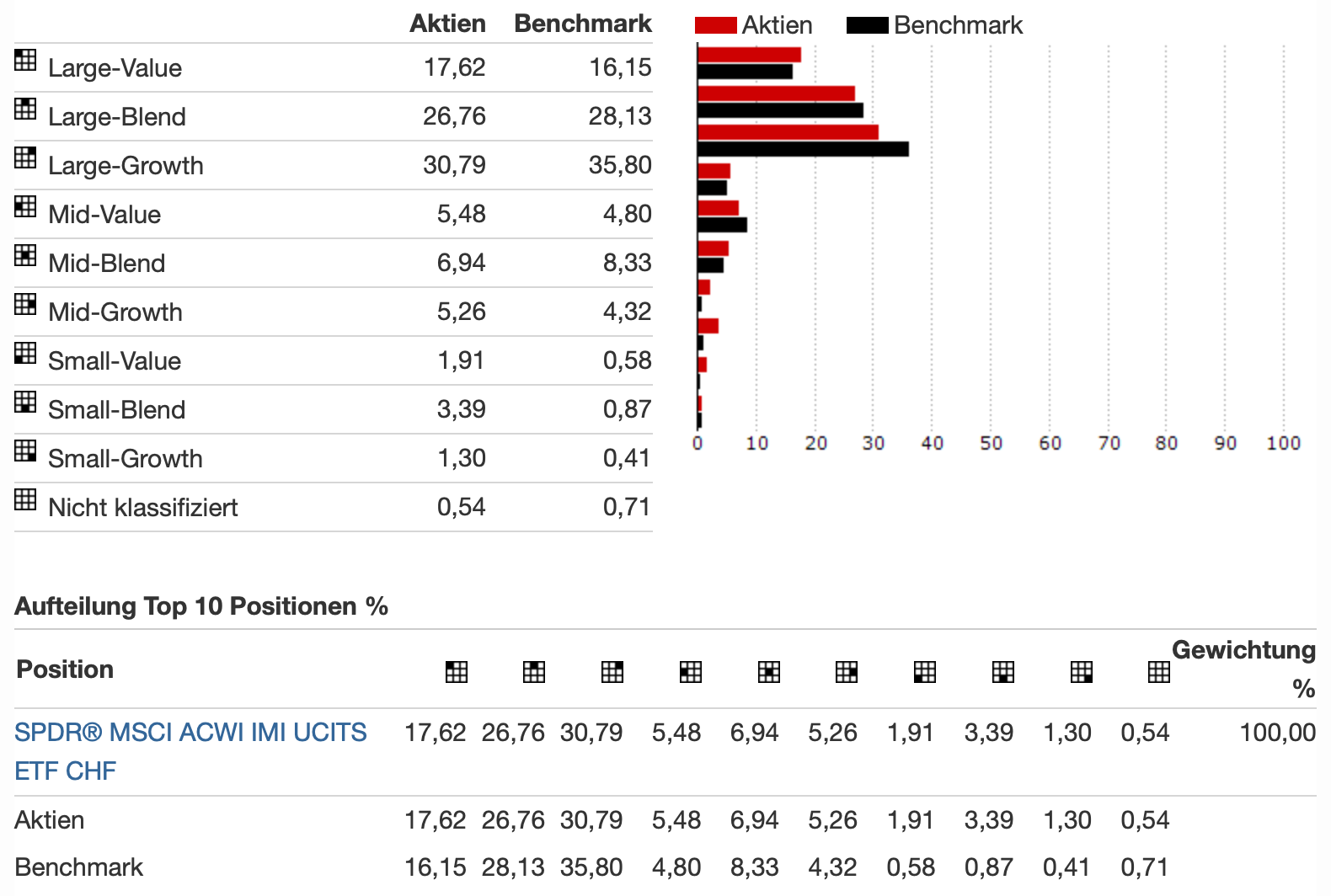 ETF-Opfer Juli 9, 2024 Quelle: Morningstar X-Ray: https://tools.morningstar.de/de/xray/editholdings.aspx?LanguageId=de-DE&values= Benchmark ist immer "Aktien Weltweit Standard" Anteile Large, Mid und Smallcap anhand Marktkapitalisierung bei SPDR ACWI IMI ETF (MSCI Index): VANGUARD FTSE All-World ETF (FTSE Index): iShares CORE MSCI World ETF (MSCI Index): AMUNDI PRIME ALL COUNTRY WORLD ETF (Solactive Index): Quelle: Morningstar X-Ray Diesen Beitrag teilen Link zum Beitrag