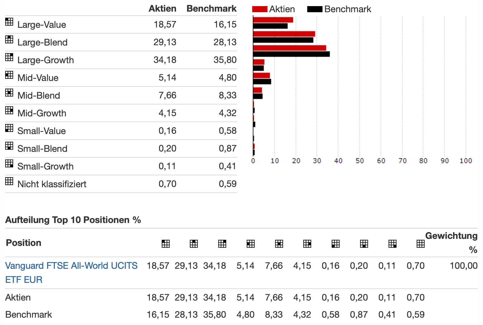 blueprint Juli 9, 2024 · bearbeitet Juli 9, 2024 von blueprint vor 8 Stunden von Ungeheuer: Kann mir jemand sagen, wie hoch in diesem ETF jeweils der Mid-Cap und der Small-Cap-Anteil ist? Ich finde dazu leider keine konkreten Angaben. Früher konnte man das super bei Morningstar im X-Ray sehen, aber irgendwie funktioniert der seit einiger Zeit nicht mehr, man kann alles eingeben, aber wenn man auf X-Ray klickt passiert einfach garnichts. Geht es nur mir so? Oder haben alle das Problem? Edit: Ha, das Instant X-Ray funktioniert zumindest noch.... Bitteschön Nicht wundert, der 1% Vanguard ist mit drin, weil man mindestens 2 Fonds auswählen muss für das Instand X-Ray Quelle: morningstar.de Diesen Beitrag teilen Link zum Beitrag