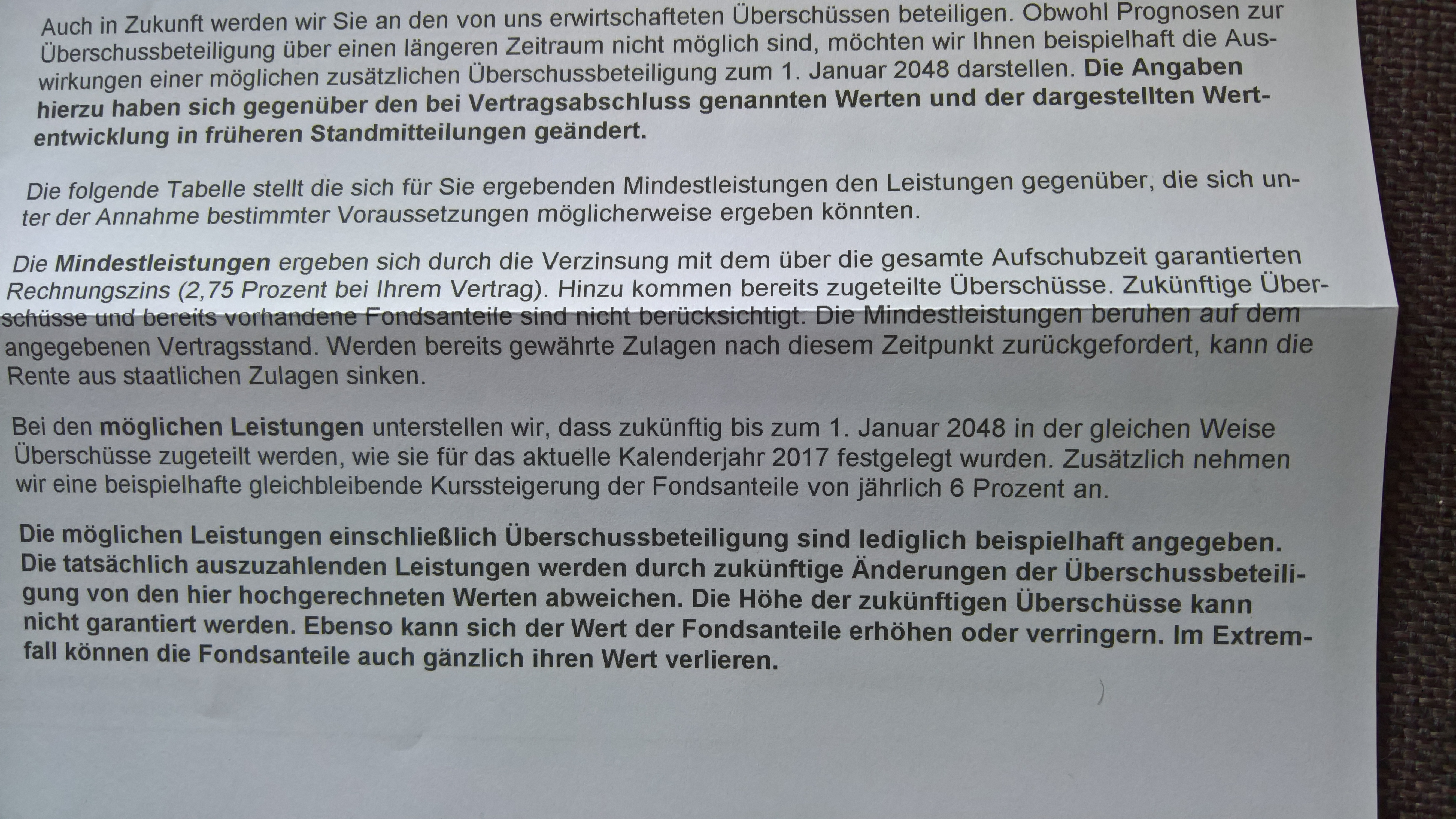 SkyWalker März 15, 2017 Just heute ist die Abrechnung der Debeka für meine Riester reingeflattert. Anbei ein Ausschnitt aus dem Anschreiben der Debeka. Diesen Beitrag teilen Link zum Beitrag