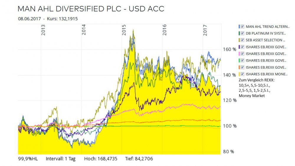 Smartinvestor Juni 10, 2017 · bearbeitet Juni 10, 2017 von Smartinvestor Am 8.6.2017 um 23:45 schrieb Bärenbulle: zu 1: steht oben. Wer lesen kann ist klar im Vorteil ...und wer die Frage verstehen kann erkennt, dass dazu oben nichts steht außer völlig Substanzloses: "im Zusammenhang mit der Index-Lizenz erbrachten Leistungen". Aha, jetzt weiß dann wohl jeder hier, was die konkret so gemacht haben für ihr Geld. Haben, denn im aktuellen Prospekt vom Juli 2015 findet sich absolut nichts von irgendwelchen Gebühren für Indexsponsoren oder Swapgeber. Wenn du also die von comdirect angegebene TER glaubhaft als falsch oder irreführend kritisieren willst, dann mach hier bitte eine vollständig mit aktuell gültigen Zahlen, Daten, Fakten aus dem ausführlichen Verkaufsprospekt unterlegte leicht nachvollziehbare Rechnung auf. Bis dahin bleibt es deine leider irreführende rein persönliche Meinung, die ich dir natürlich weder nehmen kann noch will. Für mich liegen die MAN AHL Trend bzgl. Gebühren und risikoadjustierter Rendite jedenfalls vollständig im Rahmen der übrigen von mir sorgfältigst ausgewählten langjährig weit überdurchschnittlichen MFFs, s.u. Chart. Sogar seinen Zwillingsbruder MAN AHL Div. plc scheint er seit einem guten Jahr zu überholen, vermutlich aufgrund der reduzierten Gebühren. Alles klar? Zitat zu 2: Nö. MSCI ist ein seriöses Unternehmen. Diese Gebührenebene hat vor allem einen Zweck (i.e. versteckte Gebührenerhöhung) ...wie kann etwas versteckt sein, wenn es seinerzeit klar benannt wurde, wie du es oben selber aus dem Prospekt zitiert hast, auch wenn nicht konkret beschrieben. Für mich daher ebenfalls ein substanzloses und dazu noch überholtes Gegenargument. Zitat zu 3: zz. mag es ruhig sein, aber der Man AHL war sehr bekannt. Meiner Meinung nach zu unrecht, da er gemessen an dem Mega-Hebel schon immer hinter der Erwartung zurückblieb. Also ich habe trotz intensiver Suche auch noch nie etwas von dieser angeblich „riesigen Marketingmaschine“ gefunden, bitte gern um entspr. Links/Zitate, wenn es je doch irgendwann irgendwo etwas dergleichen gegeben haben sollte. Ganz im Gegenteil wundert mich eigentlich nicht, dass solch ein überdurchschnittlicher Fonds ganz ohne Werbung auskommt. Also das hier war jetzt nicht nur substanzlos sondern sogar völlig aus der Luft gegriffen bzw. auch eine der üblichen "Dummheiten, Besserwisser-Belehrungen, Ego-Allüren und persönlichen Scharmützel, um ... weiterhin für Unterhaltung zu sorgen". Und was die Erwartungen an diesen MFF betrifft: also meine (primär zur effektiven Diversifikation bzw. Crash Absicherung der Aktienallokation) wurden sogar übererfüllt, da mir genaugenommen dessen Zwillingsbruder MAN AHL div. plc (ich allokiere den AHL Trend hier bislang wegen der zu kleinen Allokation, zukünftig dann wohl auch wegen dessen besserer Performance) durch seine neg. Korr. nicht nur meinen MDD in 2009 um ca. 40% ggü. MSCI World reduziert hat sondern gleichzeitig die Rendite meines Gesamtdepots von E.1998 bis E.2015 um +0,5% p.a. vom 6,5 auf 7% p.a. verbessert bei 9,1% p.a. eigener Rendite. Dabei waren Rendite und MDD seit E.1998 im Vergleich zum MSCI World völlig angemessen, s.u. Chart. Es war sogar so, dass der MAN AHL div. keinerlei dem MSCI vergleichbare MDDs hatte. Stattdessen hatte ersterer MSUs (Max. Shoot Ups) in ähnlicher Höhe wie letzterer MDDs hatte. Was will man mehr, Hebel hin oder her? Offensichtlich verstehen AHL mit ihrer 30-jährigen Erfahrung offensichtlich was von ihren Geschäft, oder? Vielleicht wird dir jetzt auch klar, warum ich bei diesen Spitzen-MFFs deutlich (genaugenommen unendlich mal) mehr Alpha / TER bekomme, als bei allen akiven und passiven Aktienfonds, deren Alpha i.d.R. < 0 ist, und das auch noch bei negativer Korrelation zu diesen. Was willst du eigentlich mehr? Aber verrate uns gern, welche höheren Erwartungen du dir konkret mit welchen alternativen negativ korrelierten Fonds erfüllt hast, um hier wenigstens etwas Substanz reinzubringen. Bin sehr gespannt, ob du außer heißer Luft sonst noch was auf Lager hast. Ansonsten hat wie ich auch Sucher, der sich ab hier ebenfalls sehr kompetent und kritisch mit den hier diskutierten MFFs ganz unabhängig von mir auseinandergesetzt hat, in einem anderen Thread bestätigt, dass "man damit der König [ist] ..., muss aber nicht". Letzteres nämlich dann, wenn sich das bei diesen Fonds möglicherweise erhöhte operationelle Risiko, das im aktuellen Prospekt auch ganz offen transparent gemacht wird (s.u. Programming and Modelling Error und Trading Systems Risk*), existenzgefährdend realisiert. Das ist auch meine einzige rel. geringe Sorge, der ich durch maximale Diversifikation auf aktuell 4 sorgfältigst ausgewählte investierbare AR/MFFs begegne. Allerdings glaube ich, dass CTA's durch ihre ständige Beschäftigung mit sehr hohen Risiken, diese wesentlich besser im Griff haben, als z.B. Banken, die sich ja reihenweise durch ihre unkontrollierten durchgeknallten Trade selber liquidieren (z.B. Leeson/Barings oder Kerviel/Societe Generale). So etwas kann ich mir bei meinen CTAs überhaupt nicht vorstellen. Aber trotzdem ignoriere ich das Klumpenrisiko nicht und strebe Allokationen von max. 5% in einzelne AR/MFFs an (aktuell noch 10%). Wer also noch weitere hier in Europa Käufliche ähnlich hoher Qualität kennt, bitte um Nennung. Allein das würde mir hier noch substanziell weiterhelfen. Der ebenfalls hervorragende Aspect Diversified Fund bzw. dessen UCITS Version Aspect Diversified Trends, der übrigens von A und L aus AHL direkt aus dem MAN AHL Diversified plc abgeleitet wurde, liegt bei mir noch auf der WV-Liste. Ich konnte aber bislang leider noch keine zugängliche Bezugsquelle finden. Wer eine kennt, bitte ebenfalls hier um Nennung. In den würde ich dann liebend gern sofort diversifizieren, um das operationelle Risiko noch weiter abzusenken. Zitat zu 4: keine. Man kann aber Momentum ETF kaufen oder noch besser Assets verka