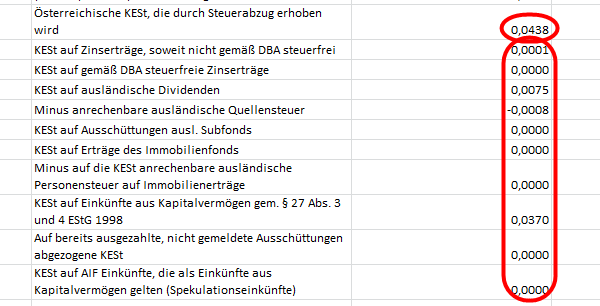 jb27 November 8, 2016 Update: Die Situation scheint wie folgt zu sein (bin kein Steuerberater, Infos ohne Gewähr): 1) Die Fondsgesellschaft fordert die je nach DBA (Doppelbesteuerungsabkommen) rückforderbare Quellensteuer vom einhebenden Land zurück. 2) Die Fondsgesellschaft berücksichtigt die noch nicht rückgeforderte/anrechenbare Quellensteuer in den Fonds-Meldedaten (www.profitweb.at, ISIN eingeben und unter Steuerdaten Excel-Sheet herunterladen): Die Zeile "Österreichische KESt,die durch Steuerabzug erhoben wird" gibt die effektive KESt pro Anteil an (die die noch zu zahlen ist). Dieser Wert ergibt sich durch die Summe der Zeilen darunter. Hierbei wird auch der Bertrag "Minus anrechenbare ausländische Quellensteuer" berücksichtigt. 3) Die Depotbank berechnet die zu zahlende KESt basierend auf den Fonds-Meldedaten. Soweit die Theorie. Ob die Depotbank die Fonds-Meldedaten korrekt in KESt Zahlungen umsetzt wird sich zeigen (die obige Regelung gilt AFAIK seit 03.06.2016). Mich würde interessieren, was eure Erfahrungen sind. Könnt ihr die KESt. Abzüge bei Fondsausschüttungen mit den Fonds-Meldedaten in Einklang bringen? Diesen Beitrag teilen Link zum Beitrag