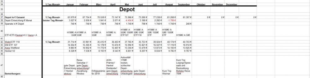 *Teufel* September 2, 2019 · bearbeitet September 2, 2019 von *Teufel* am 01.09.2019 -693€ ist das "Vermögen" geschrumpft auf nun 146.820€ für August: Positiv: - Negative: Depotentwicklung -1709€ Sonstiges: * Es gab eine Ausschüttung bei den ETF s von 803€ (Freistellung gestellt) (da hatte ich deutlich mehr erwartet??) (da wiederanlage nirgends verbucht) * Auf grund von hohen geplanten Kosten >>>kein Depot Sparplan mehr Privat: * waren wir 2 mal unterwegs in Leipzig und Spreewald * auch hab ich die Restzahlung für die geplante Rhodos Reise geleistet (705€) * Vendig und Nünberg Reise fallen auf Grund von zu viel "Familienplanung" aus) Eltern werden Woche 8 * Wohnung gekündigt und neue Wohnung angeschaut (Mietvertrag evt nächste Woche) (es geht in eine 3 Raum Wohnung Plattenbau 65m2 für <600€ Warm) die Wohnung sind Neu renoviert mit Balkon und Fahrstuhl. EBK fehlt. (es soll mit einem Monat Überschneidung umgezogen werden) zu meiner Frau * Gespräch mit der Arbeitsstelle von meiner Frau steht an (evt Berufsverbot) (Krankenschwester) * Studium: Semester x wird wohl fertig und von März 20 an Muterschutz >> 12 Monate Elternzeit>> Semester x1 zu mir: *soll es nicht heißen dreimal umgezogen ist wie einmal abgebrannt? große wünsche stehen an für die Wohnung. *ich werde wohl ein Teil vom Kinderzimmer für mein Sport bekommen bis unser Kleiner ganz dort schläft...muss mich aber verkleinern *steile Lernkurve was ein Kind alles bedeutet *Mietschuldenfreiheitsbescheinigung muss man bezahlen..... *und 2 mal ärger kommt auf mich zu: Auto nicht umgemeldet 2011 (es wohnt noch bei meinen Eltern) (Starfzettel und Steuern sind aber bezahlt wurden) * seid 2011 hat die Wohnung doch etwas unter mir gelitten schönheitsklausel ist aber vermutlich ungüldig....aber die Schäden muss ich ja totzdem bezahlen ( z.b. den Boden beschädigt man steht in einen Loch wo ich mein heben gemacht hab....ca 1cm tief) wie verändern sich unsere Zahlen: (Glaskugel) *vermutlich fällt meine Frau unter die 450€ Grenze und ich kann Sie familienversicheren( 90€ gespart ) *bei mir geht der Pflegeversicherungsbeitrag ab Geburt um 0,25% runter * Kindergeld von 204€ (Kinderfreibetrag bringt uns erstmal nichts) *mehr Bedarf Kind von ca 150€ über Kindergeld *Elterngeld für meine Frau von nur 300€ (- 200€) *ca 150€ mehr für Miete *mehr Strom,Wasser, und Fahrtkosten Diesen Beitrag teilen Link zum Beitrag
