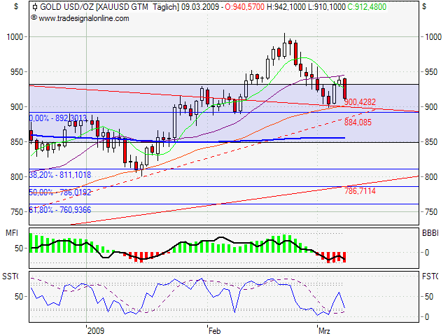 XYZ99 März 2, 2009 Der Dow durchbricht die 7000 wie ein heisses Messer Butter schneidet, Dax gegen 3700 .... und Gold in $ sinkt gegen 930. Vor kurzem korrelierten Aktienindex-Verluste mit Goldgewinnen, jetzt ist es wieder so wie Ende 2008: beide assets werden abverkauft. Gold noch weniger, aber immerhin. Diesen Beitrag teilen Link zum Beitrag