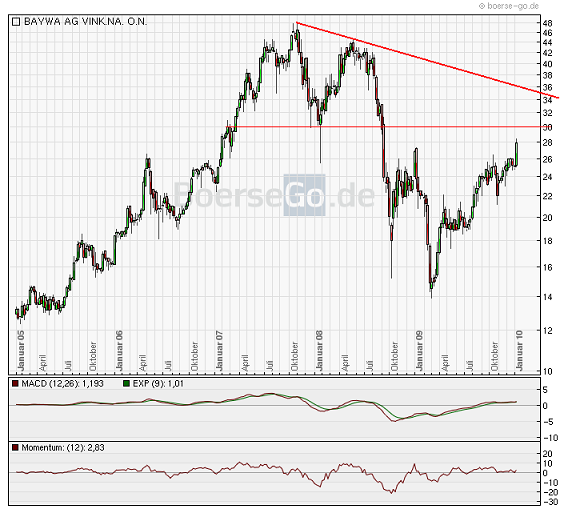 Längerfristig winken jetzt Kursziele von zunächst 30, die könnten wir schnell sehen, und später 35. Hier würde die Aktie auf den langfristigen Abwärttrend treffen.