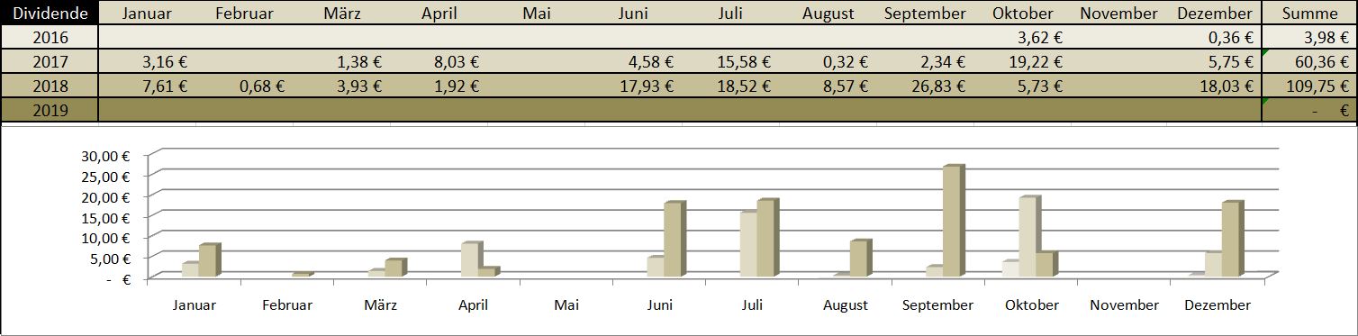 Aufgrund eines unerwarteten Geldzuflusses wurden erneut 300 € investiert, sprich 6 Nachkäufe. Der frühzeitige Kauf zur Monatsmitte stellte sich nicht als ideal heraus, hatte jedoch auch keine schwereren Konsequenzen zur Folge. Bei der jetzigen Investition habe ich ebenfalls stärker die in der ersten Monatshälfte stattgefundenen Bewegungen berücksichtigt, sowie die Differenzen seit dem zuletzt getätigten Kauf.
