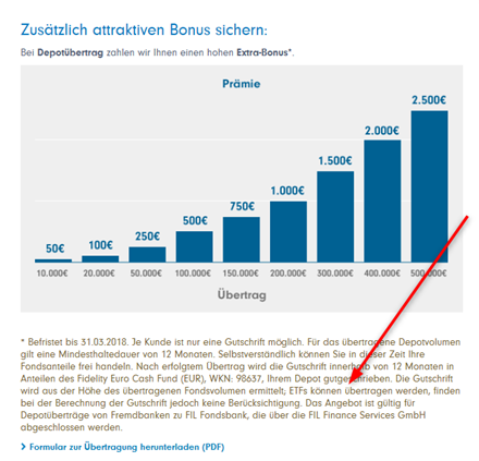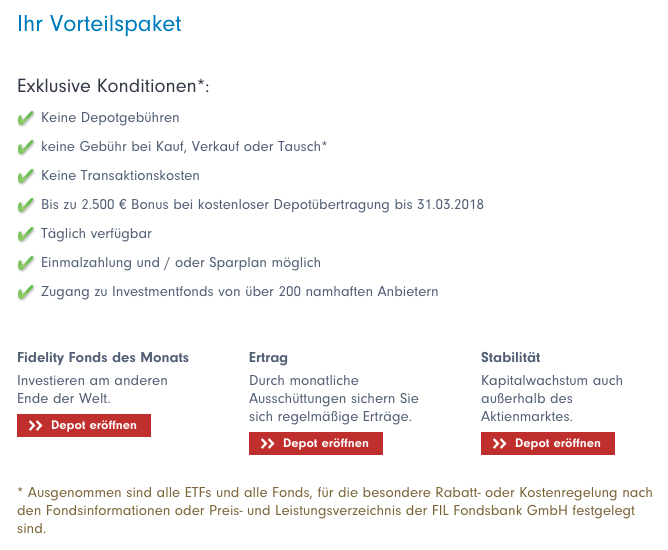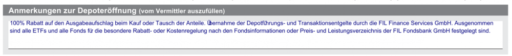 FlyingDutchman Januar 9, 2018 Hallo zusammen, ich habe heute nochmal eine Anfrage bei fidelity.de hinsichtlich der obigen erwähnten Links von Nonzenz vom 25.07.2017 gestartet: Sehr geehrter Fidelity Premium Support, auf https://www.fidelity.de/de/partnerprogramm/shoop/default.page https://www.fidelity.de/de/partnerprogramm/ceb/default.page schreiben Sie folgendes: siehe <fidelity-image.png> Im Preis- Leistungsverzeichnis zu den Vertragsunterlagen auf Seite 17 schreiben Sie: siehe <fidelity-image-2.png> und <fidelity-image-3.png> Hierzu habe ich jedoch noch Fragen: 1.) Bezieht sich Ihr Angebot auf ein FondsdepotPlus – mit integriertem Abwicklungskonto oder auf ein Kombidepot? 2.) Ist das Depot generell frei von der Depotführungsgebühr von 40,00 Euro p.a., bzw. sind das Aktiv- und das Passivkonto bei einem Kombidepot frei von der Depotführungsgebühr? 3.) Was meinen Sie mit "Keine Gebühr bei Kauf, Verkauf oder Tausch" von ETFs? Bezieht sich dies auf a.) die 0,15% Transaktionskosten b.) die ATC Gebühren c.) die 0,20% Umsatzkomission 4.) Gibt es eine Obergrenze für monatlich Sparbeträge die von meinem Konto bei einer anderen Bank für die Käufe eingezogen werden? Ich habe vor die folgenden ETFs insgesamt monatlich zu besparen: Vanguard FTSE Developed World UCITS ETF ISIN: IE00BKX55T58, ATC: 0,11% https://www.fidelity.de/de/fonds/fonds-detailansicht.page?ISIN=IE00BKX55T58#/ Vanguard FTSE Emerging Markets UCITS ETF ISIN: IE00B3VVMM84, ATC: 0,44% https://www.fidelity.de/de/fonds/fonds-detailansicht.page?ISIN=IE00B3VVMM84#/ UBS - MSCI EMU Value UCITS ETF A ISIN: LU0446734369, ATC: 0,19% https://www.fidelity.de/de/fonds/fonds-detailansicht.page?ISIN=LU0446734369#/ UBS - MSCI EMU Small Cap UCITS ETF A ISIN: LU0671493277, ATC: 0,29% https://www.fidelity.de/de/fonds/fonds-detailansicht.page?ISIN=LU0671493277#/ iShares European Property Yield UCITS ETF ISIN: IE00B0M63284, ATC: 0,13% https://www.fidelity.de/de/fonds/fonds-detailansicht.page?ISIN=IE00B0M63284#/ 5.) Welche prozentualen Gebühren müsste ich jeweils beim a.) beim direkten Kauf oder b.) beim Kauf über einen monatlichen Sparplan zahlen? 6.) Wie kaufen Sie die Fonds? Über eine Börse wie z.B. Xetra oder über direkt über die KAG bzw. den Primärhandel? 7.) Wie erkenne ich die folgenden Fonds: *Ausgenommen sind alle ETFs und alle Fonds, für die besondere Rabatt- oder Kostenregelung nach den Fondsinformationen oder Preis- und Leistungsverzeichnis der FIL Fondsbank GmbH festgelegt sind. Sprich auf welches Feld muss ich hier achten? 8.) Bezieht sich der Bonus von bis zu 2500 Euro nur auf normale Fonds oder auch auf ETFs? ====================================== Antwort von Fidelity ====================================== Gern beantworte ich Ihre Fragen wie folgt: 1) Beides. Wir übernehmen die Depotführungsgebühren. Das Kombidepot spielt dabei nur eine Rolle, wenn Sie Anteilsbestände besitzen, die vor dem 1.1.2009 erworben wurden. 2) Siehe Punkt 1. 3) ETFs kosten. Die Umsatzkommission wird mit dem im Angebot aufgezeigten Depotrabatt verrechnet (100% Rabatt auf den AA). Bei ETFs fallen die Transaktionskosten 0,15% + ATC an - bei Kauf/Verkauf sowie bei Sparplänen. 4) Eine Obergrenze ist mir nicht bekannt aufgrund der vorliegenden Einzugsermächtigung (Lastschrift). 5) 0,15% Transaktionskosten für ETFs + Ihre aufgeschriebene ATC -> ISIN IE00BKX55T58 ATC 0,11% + 0,15%=0,26%. 6) Ausschließlich über KAG 7) Ein Beispiel für Softclosing Hinweis: https://www.fidelity.de/de/fonds/fonds-detailansicht.page?ISIN=GB0033874107#/ <- bedeutet Einschränkung in der Rabattierungsmöglichkeit seitens der KAG. 100% Depotrabatt, und trotzdem ist der Fonds nur erwerbbar, dass man auf den Rabatt ganz oder teilweise verzichtet und Ausgabeaufschlag zahlen muss bei Kauf. Ziel der KAG: unter anderem Mittelzuflüsse einzuschränken/zu reduzieren. 8) Zur Übertragungssumme für Prämie gehören keine ETFs. https://www.fidelity.de/de/partnerprogramm/ceb/default.page / Hinweis finden Sie bei Zusätzlicher Bonus bei Übertragung. siehe <fidelity-image-4.png> Diesen Beitrag teilen Link zum Beitrag
