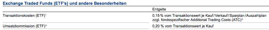tyr Juni 25, 2017 · bearbeitet Juni 25, 2017 von tyr vor 1 Stunde schrieb Nonzenz: In beiden Fällen bezahlst du keine Depotgebühr und bei jedem ETF Kauf/Verkauf nur 0,15% + ATC. Welcher Vorteil ergibt sich im Vergleich zu klassischen Onlinebrokern? Beispiel Flatex: Am 6/18/2017 um 02:19 schrieb tyr: 50 Euro Sparplan auf MSCI World: db x-trackers MSCI World Index UCITS ETF (DR) 1D, IE00BK1PV551, kostenlose Ausführung, 0,35% ATC: 0,35% Sparplangebühr, 0,18 Euro pro Ausführung Lyxor MSCI World UCITS ETF D-USD, FR0010315770, synthetisch, steuerhässlich für 2017, 90 Cent pro Ausführung, 0,09% ATC: 1,9% Sparplangebühr, 0,95 Euro pro Ausführung iShares MSCI World UCITS ETF (Dist), IE00B0M62Q58, steuerhässlich für 2017, 90 Cent pro Ausführung, 0,14% ATC: 1,9% Sparplangebühr, 0,97 Euro pro Ausführung HSBC MSCI World UCITS ETF USD, DE000A1C9KL8, 90 Cent pro Ausführung, 0,19% ATC: 1,9% Sparplangebühr, 1 Euro pro Ausführung 1000 Euro Sparplan auf MSCI World: db x-trackers MSCI World Index UCITS ETF (DR) 1D, IE00BK1PV551, kostenlose Ausführung, 0,35% ATC: 0,35% Sparplangebühr, 3,50 Euro pro Ausführung Lyxor MSCI World UCITS ETF D-USD, FR0010315770, synthetisch, steuerhässlich für 2017, 90 Cent pro Ausführung, 0,09% ATC: 0,18% Sparplangebühr, 1,80 Euro pro Ausführung iShares MSCI World UCITS ETF (Dist), IE00B0M62Q58, steuerhässlich für 2017, 90 Cent pro Ausführung, 0,14% ATC: 0,23% Sparplangebühr, 2,30 Euro pro Ausführung HSBC MSCI World UCITS ETF USD, DE000A1C9KL8, 90 Cent pro Ausführung, 0,19% ATC: 0,28% Sparplangebühr, 2,80 Euro pro Ausführung Teuer sind hier die Spar/Entnahmepläne bei geringen Summen. Diese kann man billiger gestalten, in dem man die Sparplanausführung quartalsweise, halbjährlich oder jährlich mit entsprechend größeren Summen ausführt. Oder man weicht auf Aktionssparpläne aus, dort wird die 90 Cent Kaufgebühr subventioniert. Beim Umschichten größerer Beträge kann man sparen, in dem man die Umschichtung über reguläre Order abwickelt. Zwei mal 6 Euro Ordergebühr bei 10.000 Euro Volumen im Direkthandel macht 0,12% Umschichtungskosten. Fidelity hat den Fondsfinder https://www.fidelity.de/de/fonds/fondsfinder.page, dort sind folgende Konditionen zu sehen: db x-trackers MSCI World Index UCITS ETF (DR) 1D, IE00BK1PV551: nicht angeboten Lyxor MSCI World UCITS ETF D-USD, FR0010315770: Umsatzkommission (ETF) 0,20% + ATC-Kauf/Verkaufspesen 0,09% = 0,29% pro Ausführung iShares MSCI World UCITS ETF (Dist), IE00B0M62Q58: Umsatzkommission (ETF)0,20% + ATC-Kauf/Verkaufspesen 0,14% = 0,34% pro Ausführung HSBC MSCI World UCITS ETF USD, DE000A1C9KL8: nicht angeboten UBS ETF (LU) MSCI World UCITS ETF (USD) A-dis, LU0340285161 (kein Flatex-Sparplanangebot): Umsatzkommission (ETF) 0,20% + ATC-Kauf/Verkaufspesen 0,16% = 0,36% pro Ausführung Bei Flatex ist die Depotführung abgesehen von den -0,04% Einlagezinsen auf dem Verrechnungskonto kostenlos. Zudem kann man noch sämtliche anderen Wertpapiere kaufen: Aktien, Einzelanleihen, strukturierte Produkte, was auch immer. Was ist demnach der Vorteil einer Fondsbank wie Fidelity/FFB, wenn man nur vor hat, ETF zu kaufen? Ich sehe den Vorteil nicht, selbst mit dem Neukundenbonus der entfallenen Depotgebühr. So eine Depotbank sollte m. E. aus Aufwandsgründen eher eine längere Geschäftsbeziehung sein, keine kurzfristige Hopping-Angelegenheit. Wenn noch eine Depotgebühr bei Fidelity dazu kommt verstehe ich den Vorteil für den Nicht-Inhaber aktiver Fonds gar nicht mehr. Edit: Noch gesehen: "Achtung: Bitte beachten Sie die Gebühren für den ETF-Handel!" Dort wird dann verlinkt auf das Fidelity Preis/Leistungverzeichnis: https://www.fidelity.de/static/assets/pdf/service/ffb-preis-leistungsverzeichnis.pdf Zitat Transaktionskosten (ETF)1 0,15 % vom Transaktionswert je Kauf / Verkauf / Sparplan /Auszahlplan zzgl. fondsspezifischer Additional Trading Costs (ATC)5 Umsatzkommission (ETF)3 0,20 % vom Transaktionswert je Kauf Umsatzkommission3 für Portfolioabwicklung 0 % bis 6,5 % vom Nettoanlagebetrag (je nach Portfoliotyp) (nur für Depots mit eingerichteter Portfoliostruktur) Heißt das, dass zusätzlich zu den o.g. Kosten je Sparplan/Kaufausführung noch 0,15% Transaktionskosten hinzu kommen? Diesen Beitrag teilen Link zum Beitrag