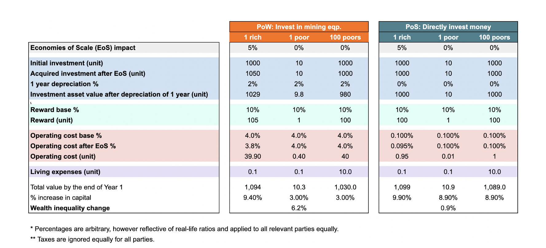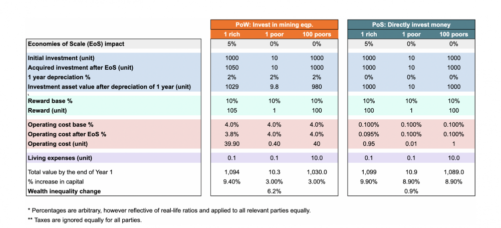 knusperente Dezember 15, 2021 vor einer Stunde von bmi: Ja, wichtig ist der Satz "Everyone had been led to believe that this ‘upgrade’ would make fees more predictable" und die Frage ist natürlich, ob man diese falsche Erwartungshaltung vielleicht nicht eher den Medien zuschreiben muss, die falsche Hoffnungen geweckt haben. Aber mal ganz abgesehen davon, dass da der ein oder andere falsche Erwartungen hatte, halte ich die Punkte mit der bevorzugten "Wealthy Class" (the rich benefit at the expense of the poor) schon berechtigt. Wie siehst du das? Durch Skaleneffekte (Economy of Scale) findet "the rich benefit at the expense of the poor" in Proof-of-Work-Systeme in einem noch viel höheren Grad statt. Das ist also kein Ethereum-spezifisches Thema. Denken wir an die Investitionen die Miner tätigen und die Ersparnis die sie haben, in dem sie Lagerhallen, Elektrizität, Hardware etc zu günstigeren Durchschnittskosten beziehen. Diese Vorteile haben kleine Miner keinesfalls. D.h. Miner als "arme Worker" darzustellen ist nicht ganz richtig - das ganze teure Equipment muss auch erstmal besorgt werden. Diese Grafik illustriert das ganze Beispielhaft (siehe Wealth inequality change, welche für PoS viel geringer ist): Link: https://newsletter.banklesshq.com/p/is-proof-of-stake-a-rich-get-richer D.h. langfristig ist der Unterschied zwischen der "Wealthy" class und "Poor" class bei PoW viel höher als bei Ethereum/PoS. Des Weiteren werden die Rewards von Stakern etwas überschätzt: Vitalik schätzt bspw, dass Staker auf Ethereum bald ca. 0.5-2% der totalen Supply im Jahr erhalten und je mehr Validators vorhanden sind, desto geringer wird der %Reward. Die Prognose ist meines Wissens dass es ca. 5% jährliche Staking-Rewards bei 70-80% der total gestaketen ETH-Supply geben wird. D.h. die Ungleichheit steigt nur über einen sehr langfristigen Zeitraum und ist im keinem Falle so, dass es eine "Herrschende" Klasse gibt die irgendwelche "Armen Leute" ausraubt. Im Gegenteil, auch "die Armen" können in viel besserer Weise von Ethereum profitieren durch Staking-Pools & dem Burn-Mechanismus der Supply, der langfristige Holder belohnt. Desweiteren sind alle Kritikpunkte bezüglich Transaktionskosten usw. meiner Meinung nach zu vernachlässigen: Ethereum hat eine ganz klare Roll-up spezifische Roadmap . D.h. die meisten User werden in Zukunft nicht mit Ethereum direkt interagieren, sondern mit den Execution Layern obendrauf. Vermutlich wird in Zukunft der User nicht mal wissen mit welcher Blockchain er genau interagiert. D.h. Staking von Ethereum ist/und wird bald auch ganz einfach über Layer 2 Lösungen möglich sein für Transaktionskosten unter 2$. Geht im Prinzip sogar schon heute -> siehe bspw. Lido ETH-Staking auf zkSync (L2)/ ohne die Vorraussetzung von 32 ETH. Um in dieses Thema tiefer einzusteigen empfehle ich Vitalik's Blog Artikel wo er gängige Kritikpunkte/Mythen zu PoS widerlegt: "Why Proof of Stake (Nov 2020)" https://vitalik.ca/general/2020/11/06/pos2020.html Diesen Beitrag teilen Link zum Beitrag