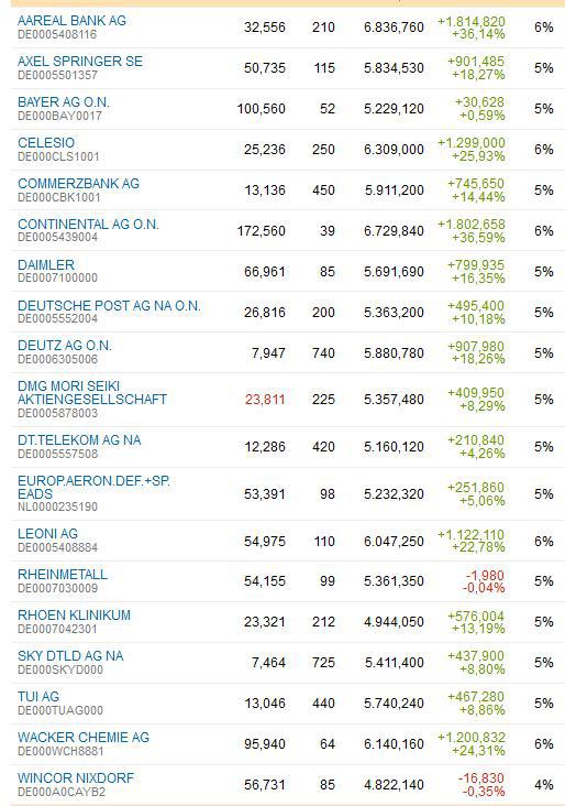 chartprofi Januar 9, 2014 Das liest sich doch wirklich gut. find ich auch ... ich würde mir wünschen öfter richtig zu liegen ... aber das geht nicht, weil ich ja die zittrigen hände zum konzept erklärt habe und verluste nicht aussitzen möchte ... aber ansonsten ist es gut in zukunft werden auch die dividenden eingerechnet, was die jahresperformance um 2-3% erhöhen sollte der mdax ärgert mich tierisch, aber das depot hat nun genug fahrt aufgenommen um halbwegs mitzuhalten Diesen Beitrag teilen Link zum Beitrag