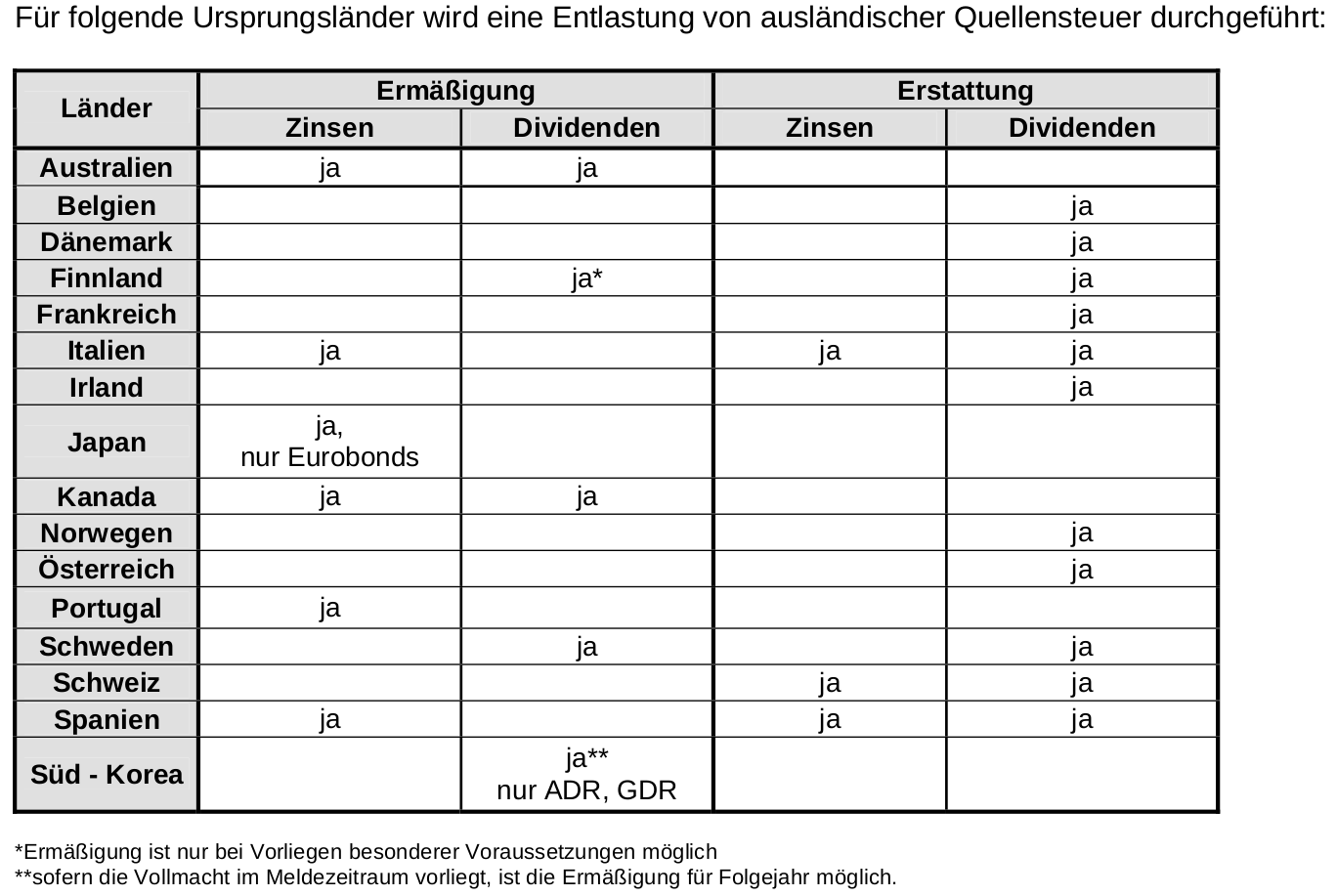 Quellensteuer bei den Staaten zurückfordern ist mir zu mühsam. Das macht meine Bank gegen Aufwandserstattung. USA, Kanada, Australien kostenlos mit Vorabbefreiung.