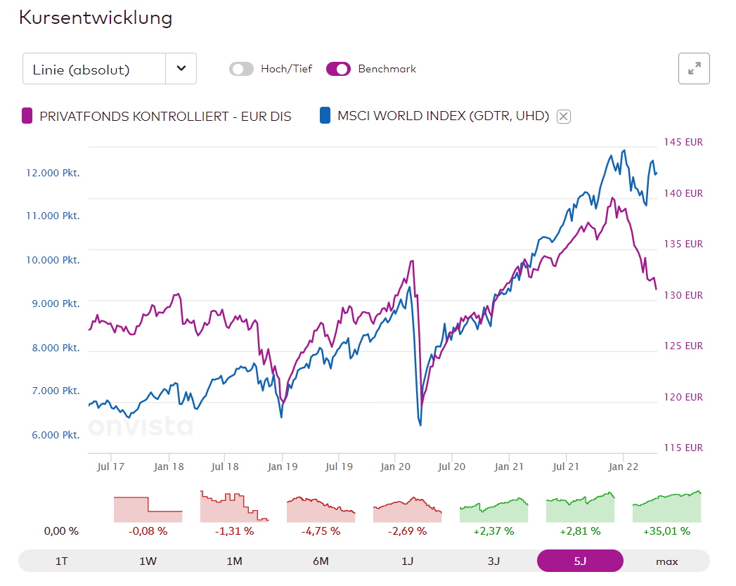 Nevs April 18, 2022 Hallo Zusammen, ich lese hier schon immer mal wieder mit, um mich über Aktien und ETF zu informieren. Aktuell schaue ich, wie ich mein Portfolio zukünftig aufbauen möchte. Ich habe dafür rund 12k Startkapital auf dem Tagesgeldkonto zur Verfügung. Nun habe ich mir vor 6 Jahren von der Bank einen risikoscheuen Fonds "anschnacken" lassen. Wobei ich denke, dass der jetzt auch nicht so verkehrt und die Entwicklung ok war. --> PrivatFonds: Kontrolliert (DE000A0RPAM5) https://www.onvista.de/fonds/PRIVATFONDS-KONTROLLIERT-EUR-DIS-Fonds-DE000A0RPAM5 Insgesamt habe ich mittlerweile 10k EUR Anteile und bespare diesen jeden Monat mit 75 Euro. Nun stelle ich mir die Frage was ich zukünftig damit mache und ob diese Entscheidung sich auch auf mein zukünftiges Portfolio auswirken wird/kann. Sollte ich den Fonds mit einer niedrigeren Summe weiter besparen, pausiere und das monatliche Geld anderweitig investiere oder ob sogar pausiere und auf einen guten Zeitpunkt zum Verkauf warte (die Inflation und der Krieg helfen dabei aber aktuell nicht), um den Erlös dann entsprechend zu reinvestieren? Ich würde mich sehr über eure Einschätzungen freuen! Danke im Voraus. Diesen Beitrag teilen Link zum Beitrag