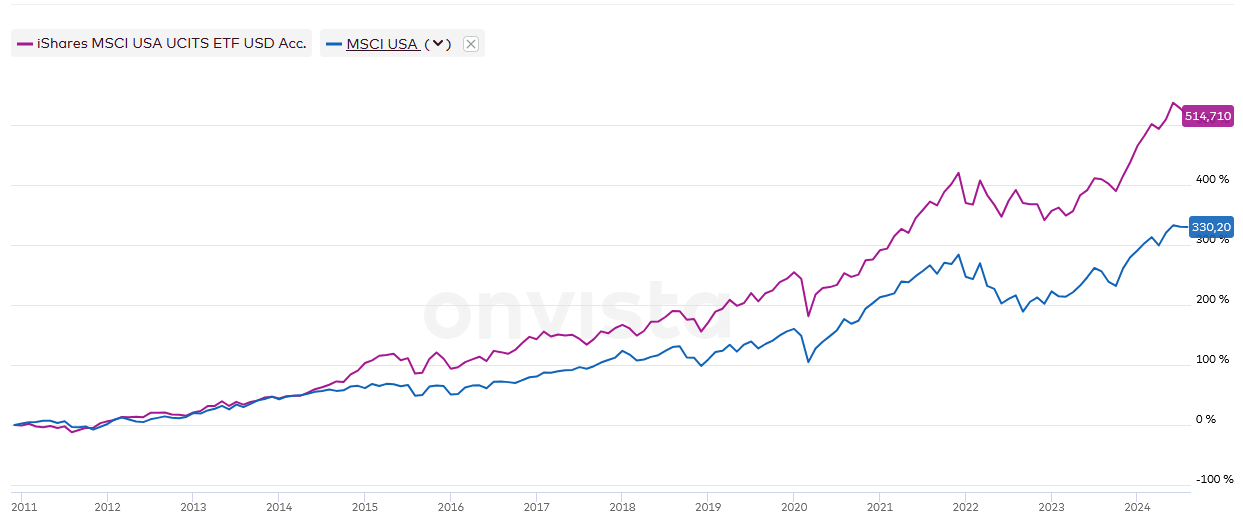 FlintheartG. August 14, 2024 Verständnisfrage zum thesaurierenden iShares MSCI USA ETF: dieser ETF (A0YEDU) hat den MSCI USA Index als Benchmark. Ich frage mich wie das Resultat aus dem beigefügten Chart zustande kommt, das eine massive Overperformance des ETFs gegenüber seinem Benchmark anzeigt? Mein Erklärungsversuch: 1. Der Verlauf des MSCI USA Index basiert auf USD, während der ETF in Euro gehandelt wird? und/oder 2. es werden beim Index Price Schlusskurse (also ohne Berücksichtigung von Dividenden) verwendet, die mit ETF EOD Daten verglichen, die Dividendenzahlungen (brutto) beinhalten. Fazit: Der korrekte Benchmark-Vergleich müsste auf Basis der gleichen Währung (und zwar a) bevorzugt in der Landeswährung des Käufers oder b) in der Basiswährung des ETFs, was hier (laut ETF-Info) USD wäre?) für ETF und Index und beim Index auf Basis von "Gross" Schlusskursen (die brutto Dividendenzahlungen berücksichtigen) ausgeführt werden. Korrekt oder liege ich falsch? Diesen Beitrag teilen Link zum Beitrag
