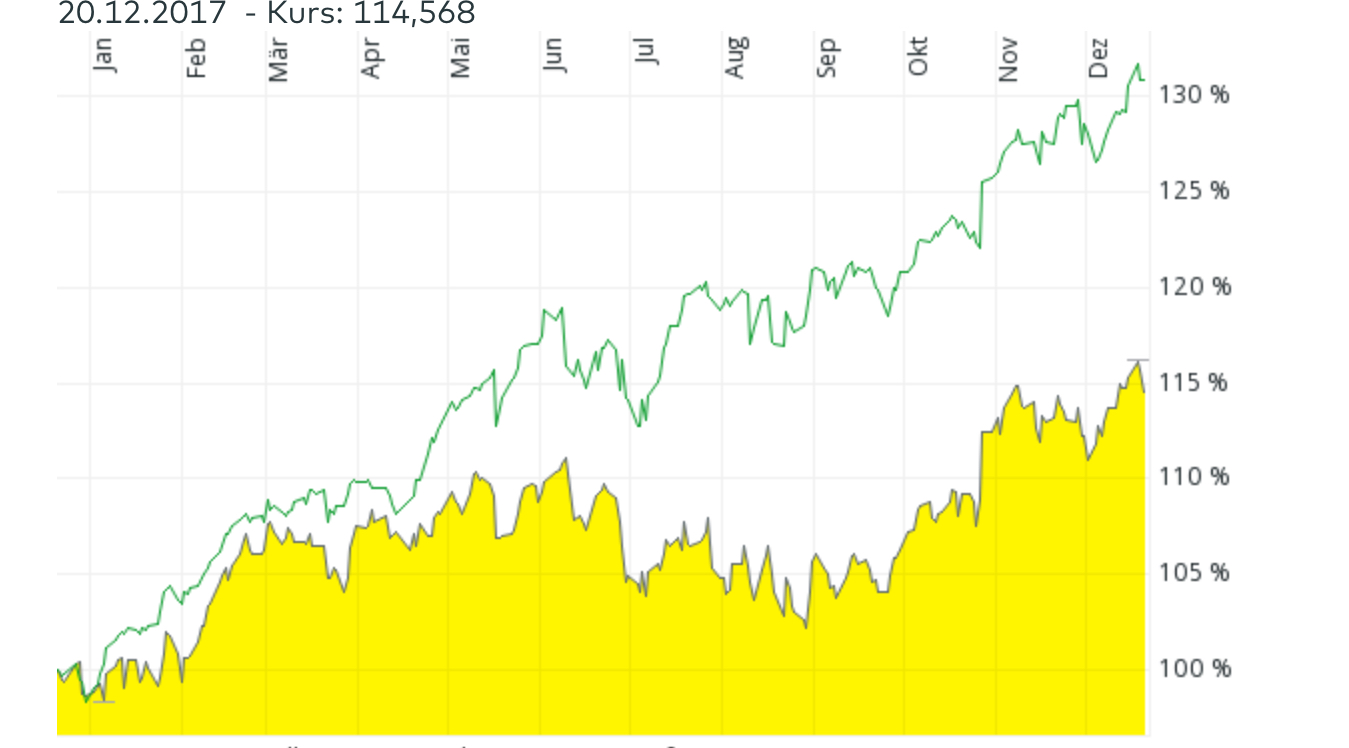 Financ Dezember 21, 2017 · bearbeitet Dezember 21, 2017 von Financ Ich habe jetzt mal die beiden Charts verglichen. Bei dem zweiten habe ich den Nasdaq mit dem Lyxor-ETF von Xetra verglichen und dort ist wirklich ein deutlicher Unterschied. Bei dem ersten Chart habe ich den Nasdaq mit dem Lyxor-ETF verglichen, wobei hier jetzt nicht die Kurse von Xetra, sondern von der Fondsgesellschaft zu Grunde gelegt sind. Hier sind die beiden Kurse nahezu gleich. Bei comdirect stand auch, dass die Kurse der Fondsgesellschaft die einzigen sind, die die Performanceentwicklung und nicht die Kursentwicklung darstellen, also sind bei den Kursen von Xetra wahrscheinlich die Dividenden nicht enthalten. Aber dennoch kann das doch nicht ein solcher Unterschied sein. Diesen Beitrag teilen Link zum Beitrag
