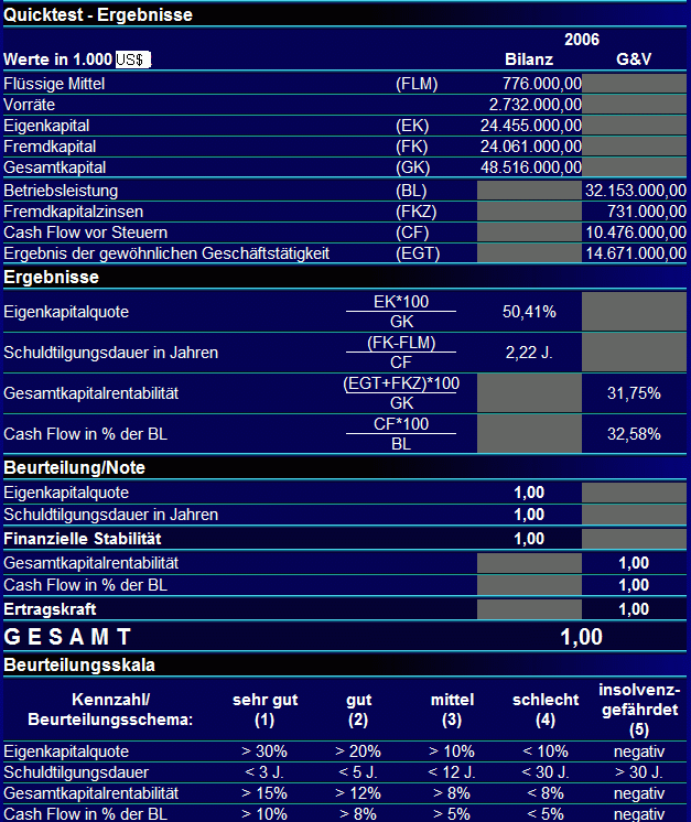 Toni Dezember 2, 2006 · bearbeitet Dezember 3, 2006 von Toni Hier die grobe Fundamentalanalyse auf Basis 2005/2006 in Form des Quicktests: Sagenhafte Zahlen! Die Eigenkapitalrendite liegt bei ca. 50% ! Diesen Beitrag teilen Link zum Beitrag