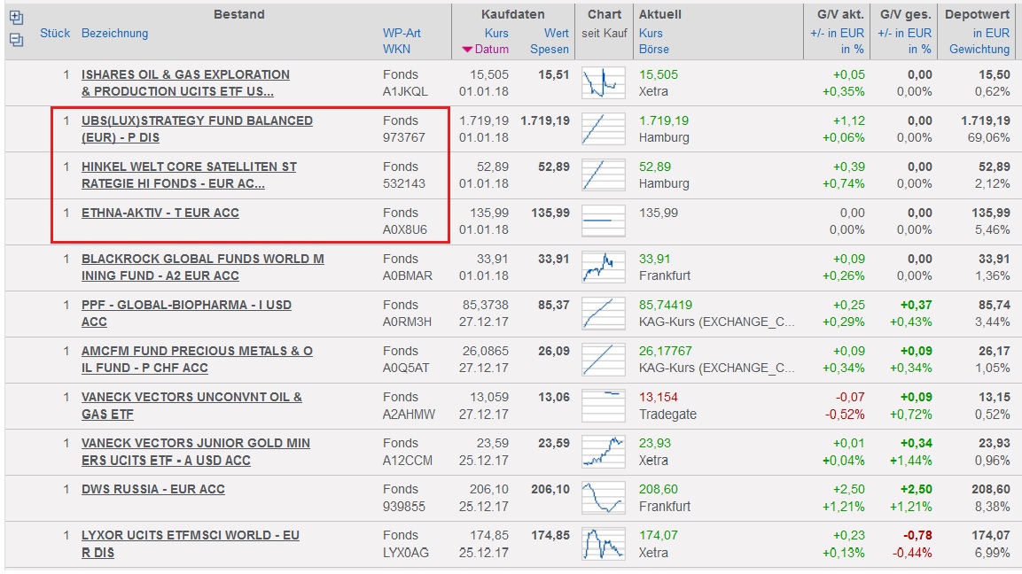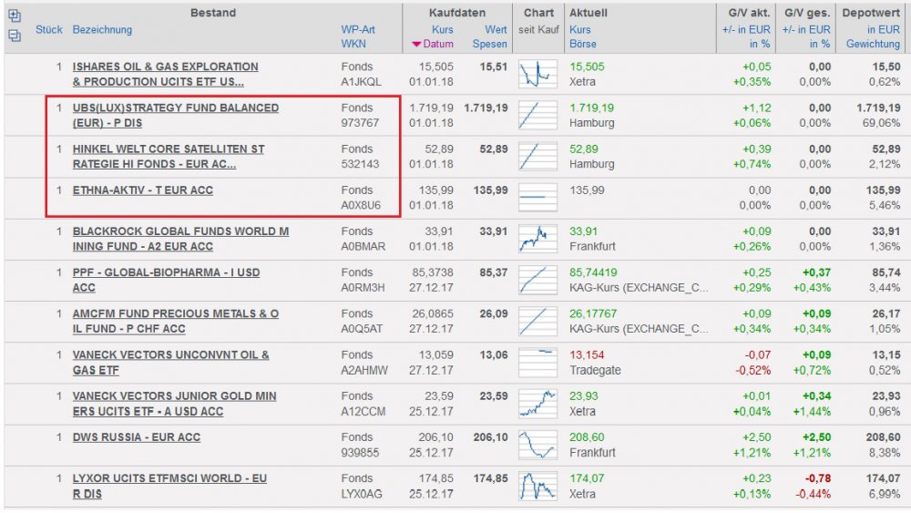 Trauerschwan Januar 1, 2018 Am 31.12.2017 um 17:32 schrieb Tradeoff: Steinigt ihn er hat nen Cent errundet Hier meine Aufstellung: Die Rennleitung möge die drei eingerahmten Mischfonds begutachten (zulassen / verbieten) Bis Ende Januar werde ich dann die KAG Kurse (29.12.) einpflegen. Diesen Beitrag teilen Link zum Beitrag