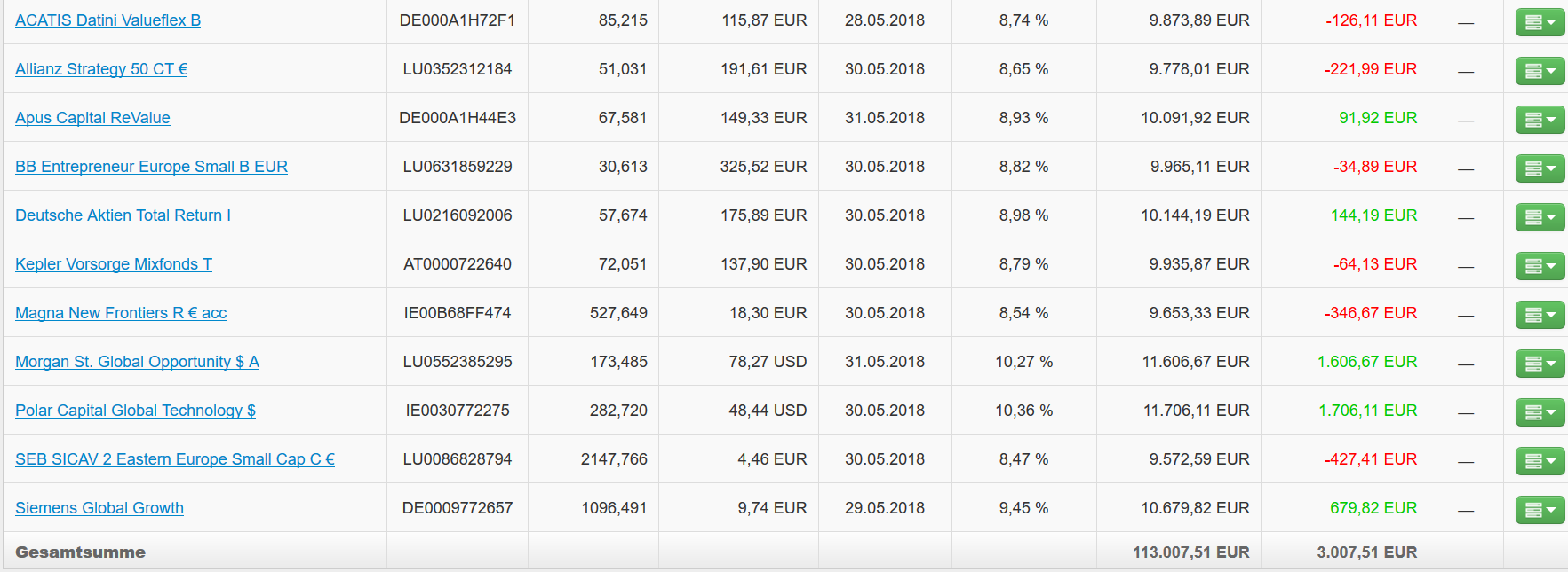 Schlumich Juni 1, 2018 Stand Ende Mai: -0.18% Und ich musste bei Onvista schon wieder einen Fonds aus- und wieder neu einbuchen, weil keine Kurse geliefert wurden (dieses mal der Korea-Fonds).... Über die WKN kamen keine Kurse mehr, über die ISN ging es dann plötzlich wieder. Diesen Beitrag teilen Link zum Beitrag