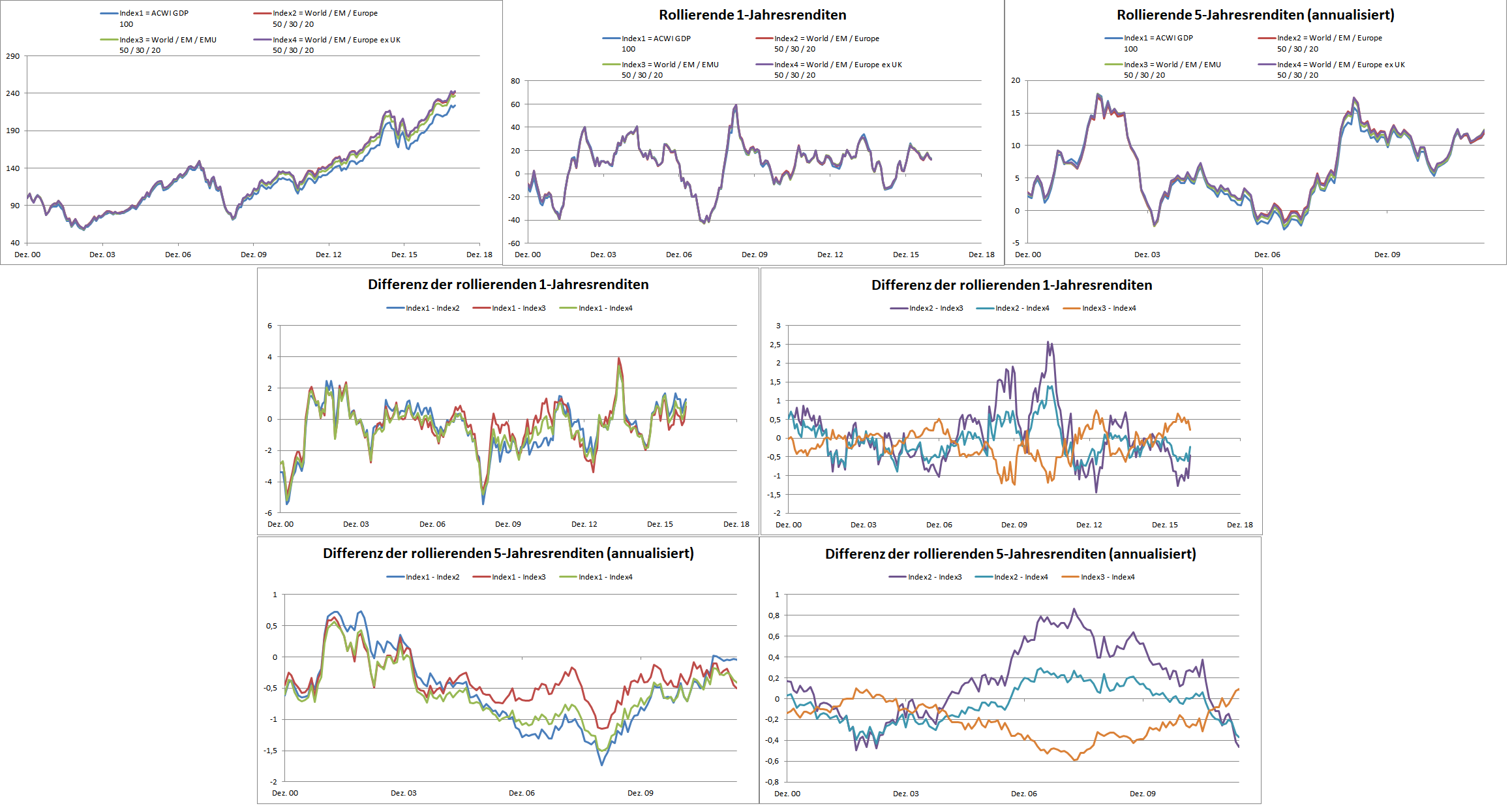 Chemstudent Januar 3, 2018 vor 34 Minuten schrieb Peter23: Ich verstehe, was Du meinst und die Idee dahinter ist sicher ähnlich, aber MSCI EMU ist ungleich MSCI Europe ex UK und von ex UK ist in dem Thread von supertobs nicht die Rede. Das ist klar, die Grundidee ist hingegen ähnlich, außerdem wollte ich ein bisschen nostalgisch sein. Anbei ein Vergleich zwischen MSCI ACWI GDP und den 3 Varianten EMU / Europe / Europe ex UK zur freien Interpretation. Diesen Beitrag teilen Link zum Beitrag