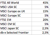 Peter23 Januar 1, 2018 · bearbeitet Januar 1, 2018 von Peter23 @tyr Ich erkläre das Problem mit UK in der 3 ETF-Lösung gerne nochmal grob. Man erweitert ja, das 1-ETF Portfolio um Europa und EM, um ungefähr eine BIP-Verteilung hinzubekommen. Das gehe ich auch 100%ig mit. Dadurch wird aber UK, was ohnehin schon im World-ETF übergewichtet war (im Vergleich mit dem BIP-Anteil) noch weiter übergewichtet. Das ist super einfach zu lösen, in dem man einfach in der 3 ETF Lösung Europa durch Europa ex UK austauscht und nur das mache ich. Komplex wird mein Portfolio nicht dadurch sondern durch die SC-Regionenaufteilung und die FM-Beimischung. Diesen Beitrag teilen Link zum Beitrag