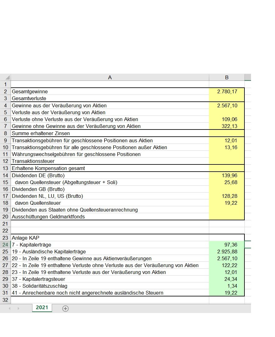 Degiro Jahresübersicht Steuer --> Anlage KAP