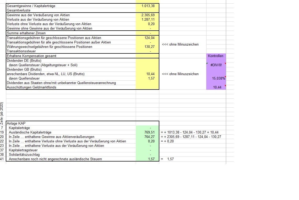 vielen Dank für die schnelle Zusendung der Tabelle.  Könntest du , oder reckoner mal kurz rüberschauen, ob es alles soweit in Ordnung ist? Bin da ein Neuling und habe da noch nicht wirklich Erfahrung drin. Bei der Eingabe ins Elster gab es bei mir eine Fehlermeldung.