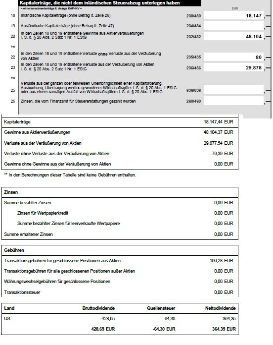 Und andererseits wurden - zu deinem Vorteil - die Dividenden gar nicht erklärt (ja, es ist wohl nicht jedem bewusst, dass die in den Kapitalerträgen nicht enthalten sind, bei inländischen Banken ist das klarer).