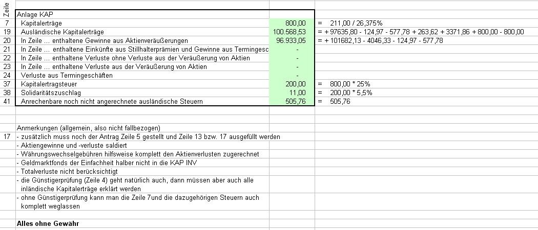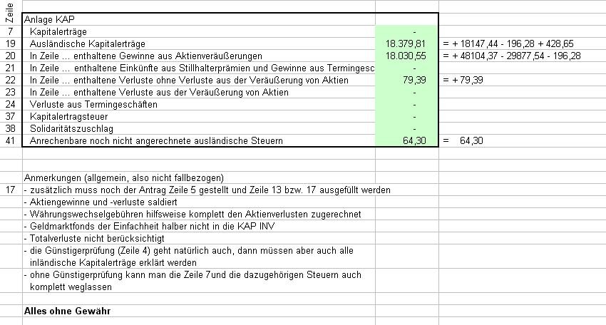 Also die Kapitalerträge, die ich fälschlicherweise wohl ebenfalls eingetragen habe in Zeile 19 (Ausländische Kapitalerträge) :