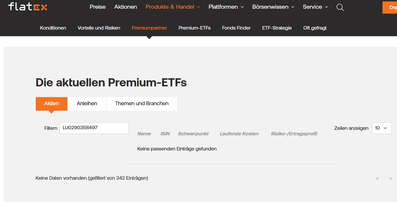 Padua Januar 24, 2024 · bearbeitet Januar 24, 2024 von Padua Am 23.1.2024 um 09:08 von DennyK: Du hast in der falschen Kategorie geschaut. Schau doch auf die Kostendetails, da steht auch noch mal das du 0€ zahlst und es 7,90€ Rückvergütung gibt. Anscheinend liest du die Kostendetails falsch. Das wichtige sind die orangefarbenen Kosten und da steht bei Einstieg eben 0,00€. Und zu deiner Frage zu den Kosten vom Entnahmeplan. Im PLV steht kostenlos. Selbst wenn sie also Kosten verlangen kann man diese sicherlich mit Verweis auf das PLV erstattet bekommen. Wenn natürlich erst gar keine Kosten, wie im PLV genannt, anfallen wäre es noch besser. Darum ging es auch in meiner Frage. Zufrieden? Ich suche gerade bei flatex die Übersicht der aktuellen Premium-ETFs und finde sie nicht. Wahrscheinlich sehe ich den Wald vor lauter Bäumen nicht. Kannst Du helfen? Diesen Beitrag teilen Link zum Beitrag