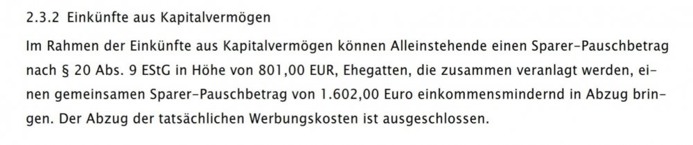 OK, ich werde es nie verstehen - bisher hatte ich angenommen, dass man für Kapitaleinkünfte keine Werbungskosten und dafür den Sparer-Pauschbetrag ansetzen kann und für Arbeitseinkommen die Werbungskosten. Das bezog sich allerdings auf die Einkommensgrenze zur Familienversicherung - sind das verschiedene Berechnungsarten?