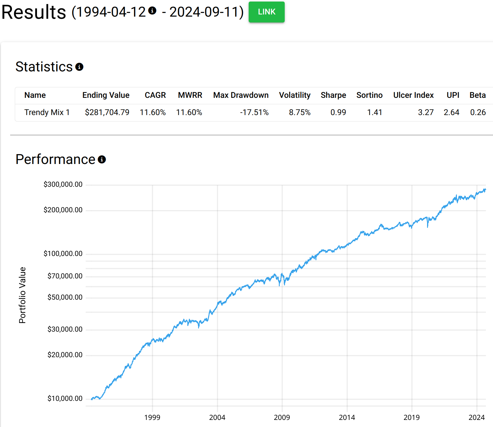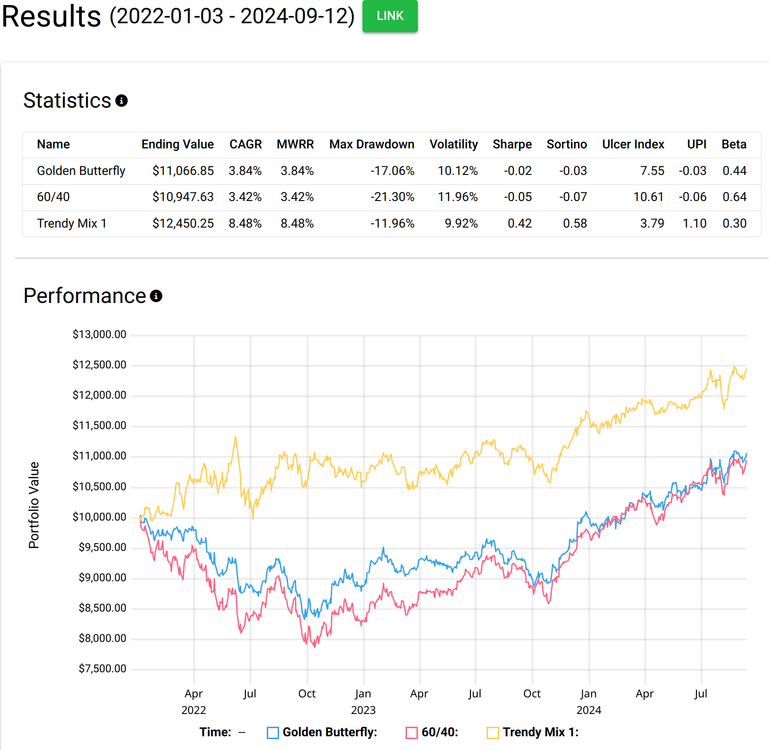 Fondsanleger1966 September 13, 2024 · bearbeitet September 13, 2024 von Fondsanleger1966 vor 5 Stunden von Sapine: Du schreibst maximal 30-40 % Aktien. Wo ist der Rest und wie sieht die Gesamtrendite aus? Eine etwas weniger stark optimierte Variante ist z.B. in diesem Posting von @StE verlinkt. Ex post geht halt vieles. ;-) Grundsätzlich aber schon richtige Gedankengänge. Allerdings in der Praxis eher etwas für Family Offices. Und hier noch ein weiterer Mix von @StE mit Long Treasuries im Vgl zu 80/20 und gehebeltem 60/40: https://testfol.io/?d=eJy1kG1PwjAQgP%2FKcp8X0wEuuMSYKE6JLBAgRDBkKdsNq6XFrkAI2X%2B3E42tL9%2B0n3p57uW5O8CSywXlA6roqoToAKWmSqc51QgRgA8ocis60i3lEAXEPB9o%2FpQyUXCqmRQQabVBHzJaPhZc7iAin0FaKHwxbaZIFd%2BbZkpyzsQy3TGR17nNsPJhLZUuJGfS2DwcQNBVPbpNvAYxJUxssdQdtmW5ESs%2F5ik0O1CRYfxlhGbZM6pjq%2BPf0Ml41E0MXKPKUGiI2qTyLd69jsdDmzdINfchV3RpFqpT361C4rWId4sL5F5wcvpvfmc%2F%2BF30zkM7J%2FjFcayMyN673GiNqngb%2BieSd0kvubcFmq7kaDD9dkSbz4b9mVMfhA7vxKOJy1sOT666Dm049Kbf6zjVbfs68%2BoVVBH3jA%3D%3D Diesen Beitrag teilen Link zum Beitrag