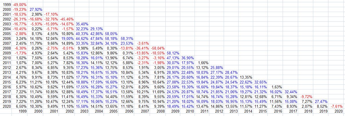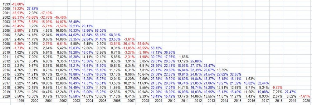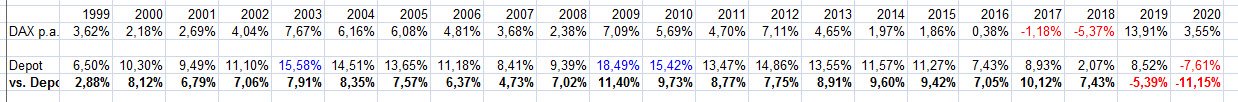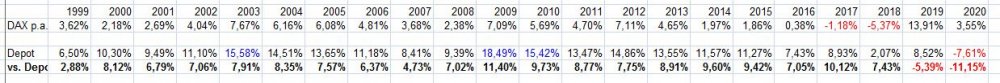 dev Januar 8, 2021 · bearbeitet Januar 9, 2021 von dev 2020 -7,61% DAX +0,65% SDAX +10,58% Langfristige Rendite Depot und Überrendite gegenüber dem DAX Renditedreieck Depot Edit: Dax-Jahresendkurs war falsch Diesen Beitrag teilen Link zum Beitrag