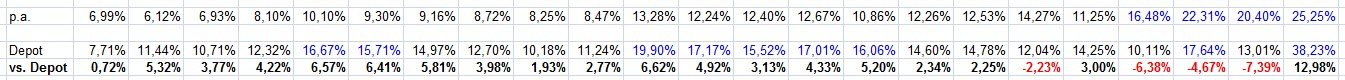 dev Dezember 30, 2019 2019 +26,44% DAX +25,32% SDAX +31,58% Langfristige Rendite Depot und Überrendite gegenüber dem DAX Renditedreieck Depot: Depot: Diesen Beitrag teilen Link zum Beitrag