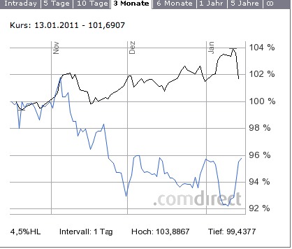 Zinsjäger Januar 15, 2011 Die EUR/USD Entwicklung sollte in der Tat der Grund sein. Die blaue Linie zeigt die EUR/USD Bewegung, schwarz ist der CP. Wir wissen ja, dass Herr C. long USD eingestellt ist. Diesen Beitrag teilen Link zum Beitrag