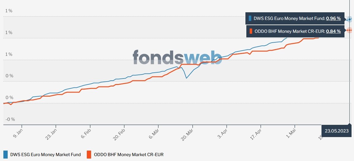 Hier sieht man schön, weshalb ich den ODDO dem DWS aktuell den Vorzug geben würde: Ich nehme an, dass sich aufgrund der Bonität der ODDO am 17.3.23 (USA Bankenkrise) stabil gehalten hat, während der DWS einen kleinen Knick bekommen hat.