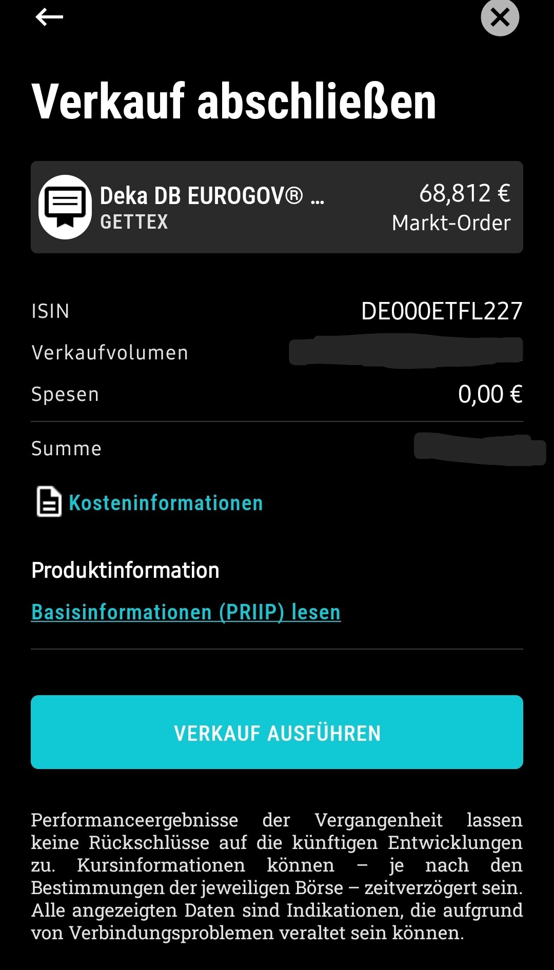 Dann werden beim Verkauf die gleichen Gebühren wie bei den ETFs fällig (4,9€ +0,25).