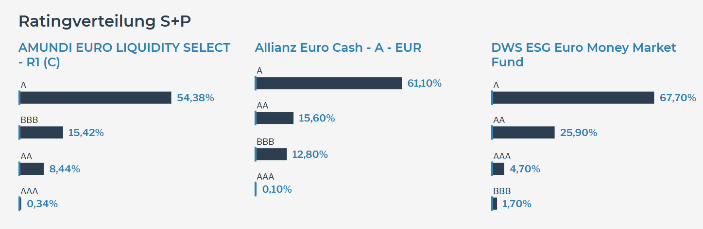 Hast du die Factsheets und Zusammensetzungen der verschiedenen Fonds mal angesehen? Bei Geldmarktfonds spielt die vergangene Entwicklung mit Charts eine völlig untergeordnete Rolle. Es zählt das, was aktuell in den Fonds enthalten ist. Bei fast keinem anderen Produkt kann man die Renditeerwartung anhand der aktuellen Zusammensetzung plus Kosten derart gut einschätzen anhand Duration, Rating und Art der Anleihen (Unternehmen oder Staat).