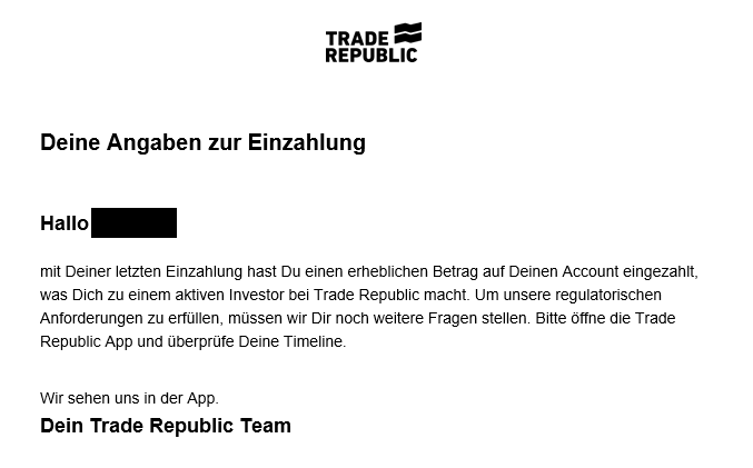 Wenn Trade Republic 20.000 Euro unter "erheblichen Betrag" versteht, und dann auch noch bei einer Überweisung in 2 Tranchen, ist denen wirklich nicht mehr zu helfen. :huh: