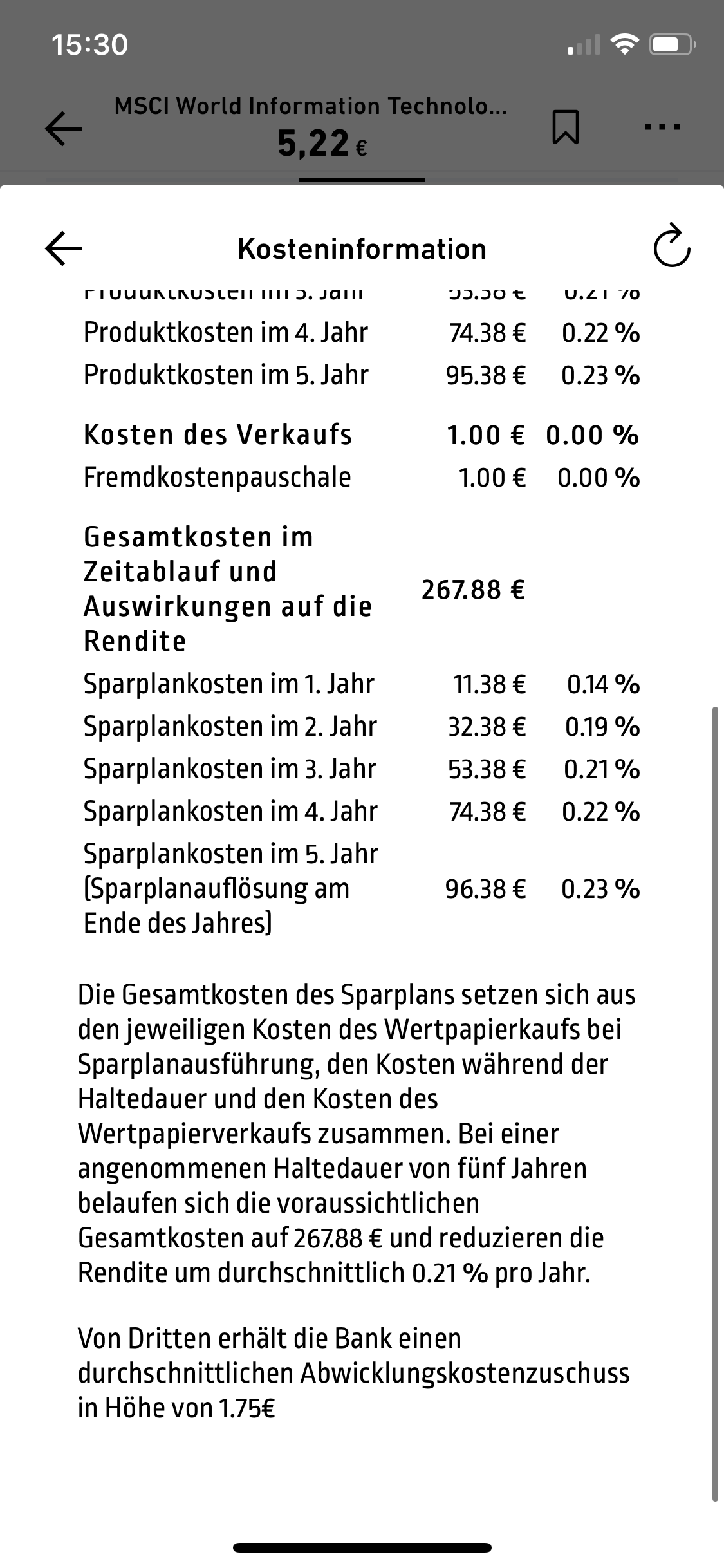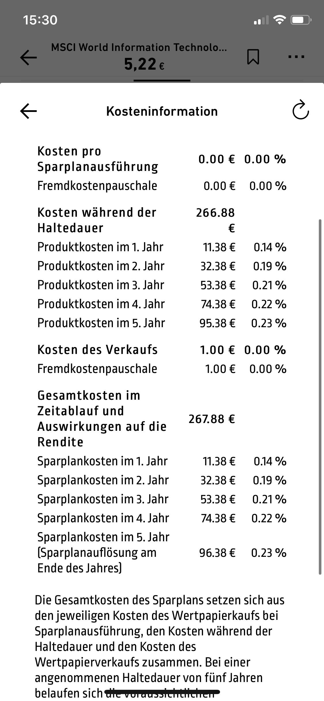 Bei Trade Republic bekomme ich für den MSCI World Information Technology 700€ folgende Kosten angezeigt.
