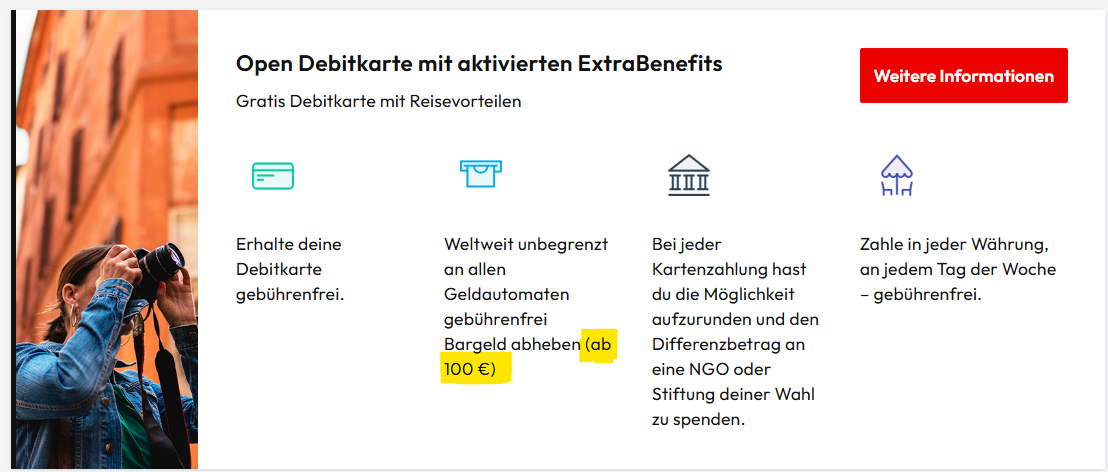 "bei einer Abhebung von mehr als EUR 100,00 erste bis einschließlich dritte Abhebung    Kostenlos