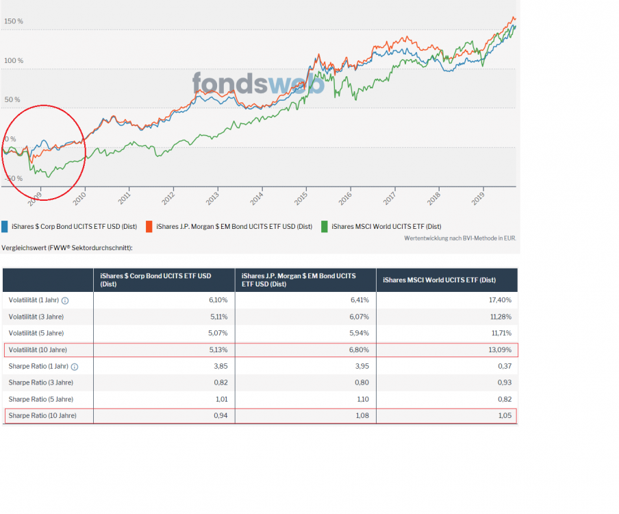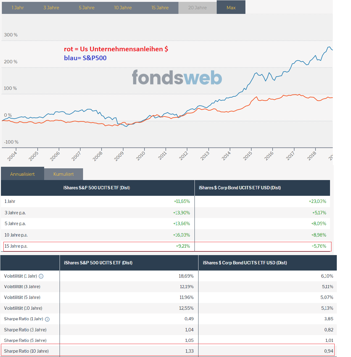 US Unternehmensanleihen $ bieten sich aus meiner Sicht an, um die Volatilität und den maxDD des Depot zu senken. Die Rendite ist dabei akzeptabel.