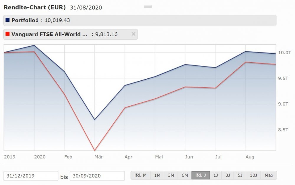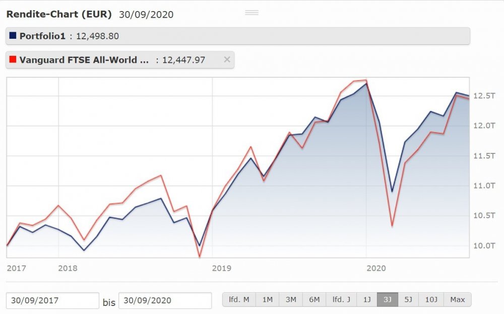 Wie hat sich denn das hier vorgestellte Basisportfolio bisher in der Corona-Krise geschlagen, also der RK3-Anteil? Vielleicht im Vergleich zu klassisch 70/30 D/EM Aktienportfolio oder auch zum ACWI/FTSE all world?
