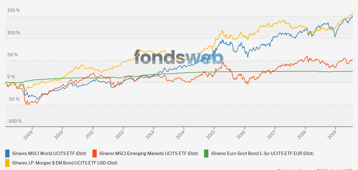 Man beachte die EM Staatsanleihen welche von vielen als sehr risikoreich empfunden werden.