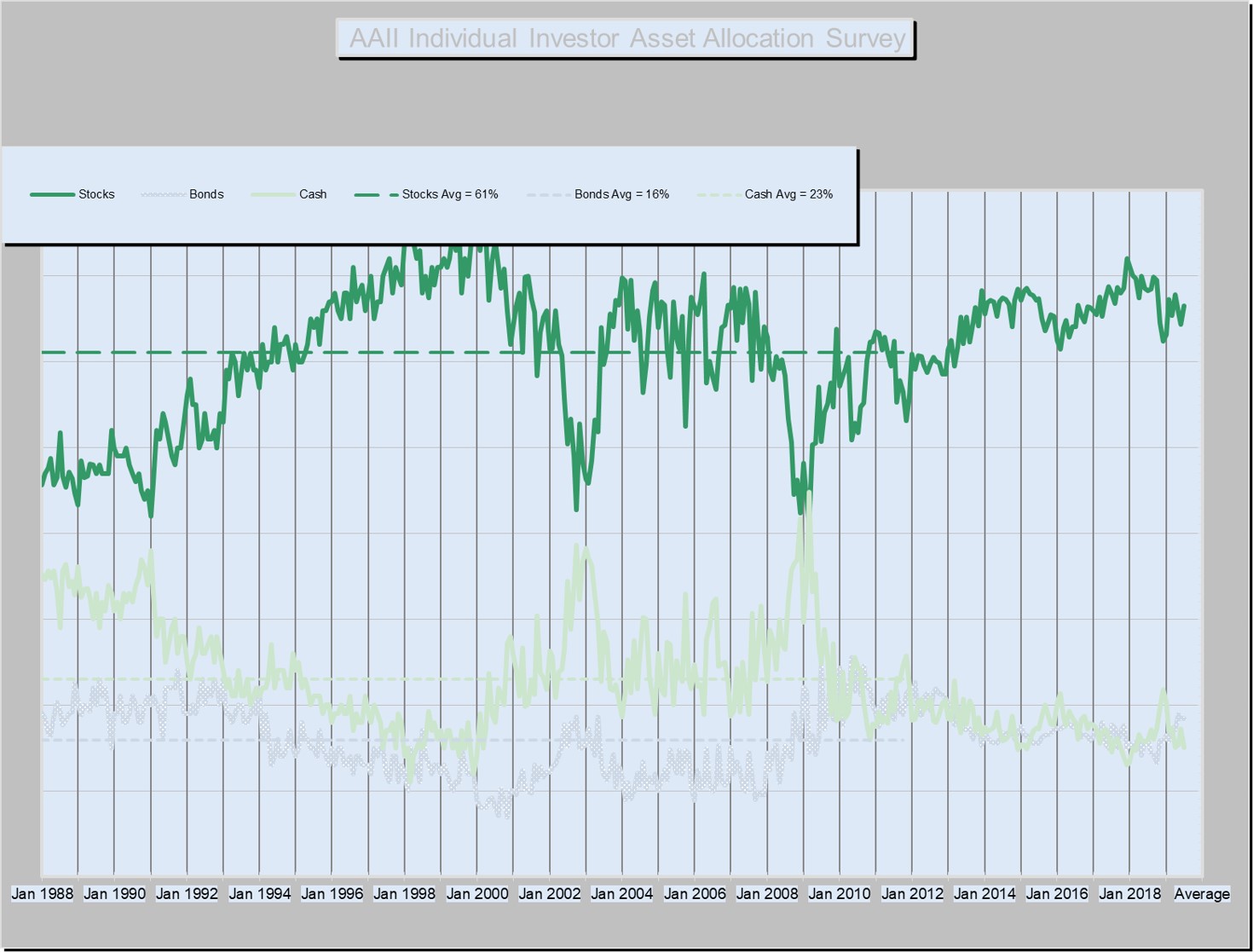 Fazit: Es stehen nicht übermässig viele an der Seitenlinie. Auch wenn das letzte Jahr ein paar Investoren aus den Bäumen geschüttelt hat. Avg ist 61% Aktienquote. Zur Zeit >65% Aktienquote. Tendenz steigend.